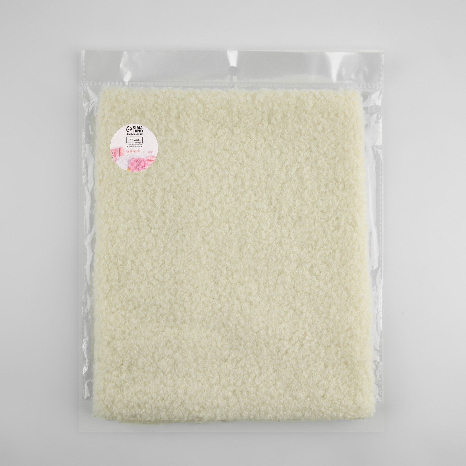 Лоскут мех "Барашек", 50 x 50 см, 500 г/м, цвет молочный №1, 25x25x1.5 см., Арт Узор, Китай