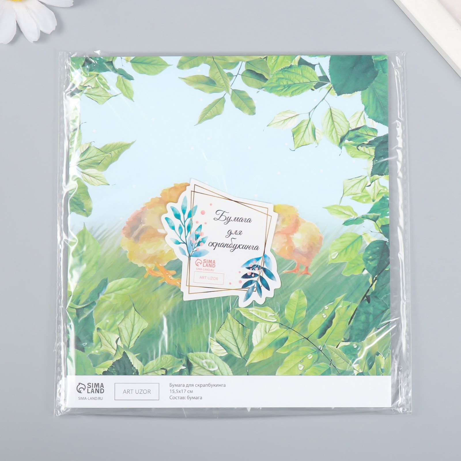 Бумага для скрапбукинга "Цыплята на траве" плотность 180 гр 15.5х17 см, 15.5x17 см., Арт Узор, Китай