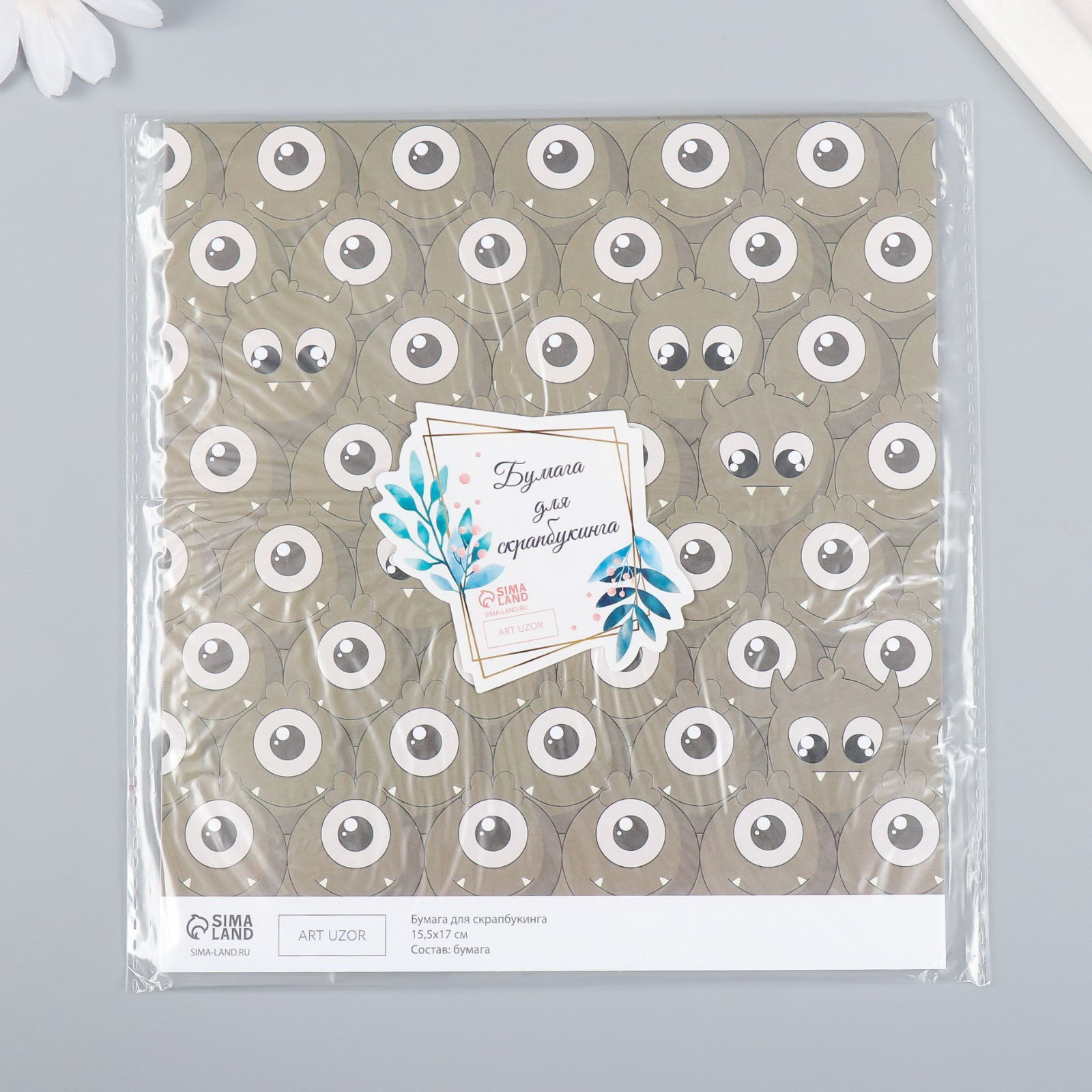 Бумага для скрапбукинга "Монстрики", плотность 180 г, 15.5x17 см, 15.5x17 см., Арт Узор, Китай