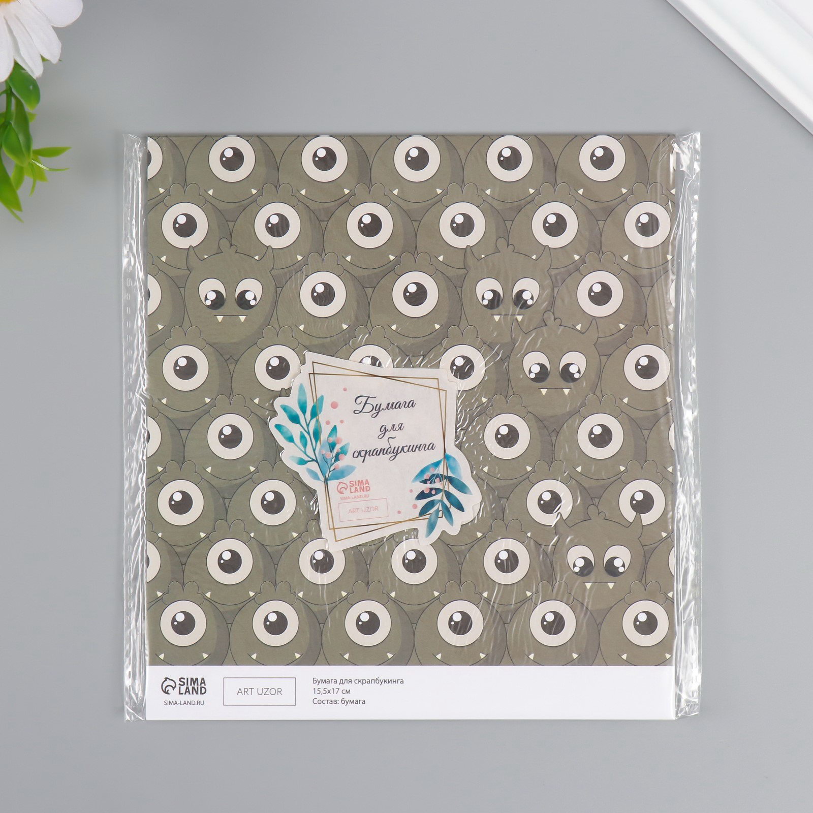 Бумага для скрапбукинга двусторонняя "Монстрики и листья", плотность 180 г, набор 10 шт., 15.5x17 см, 15.5x17 см., Арт Узор, Китай