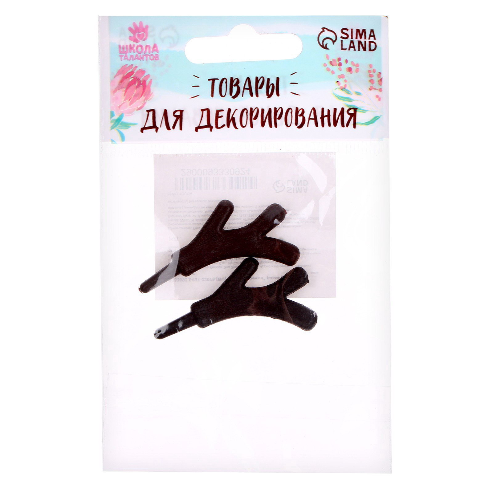 Рожки "Оленьи" размер 1 шт. 3.3x2.5 см, набор 2 шт., 0.2x15x8 см., Школа талантов, Китай