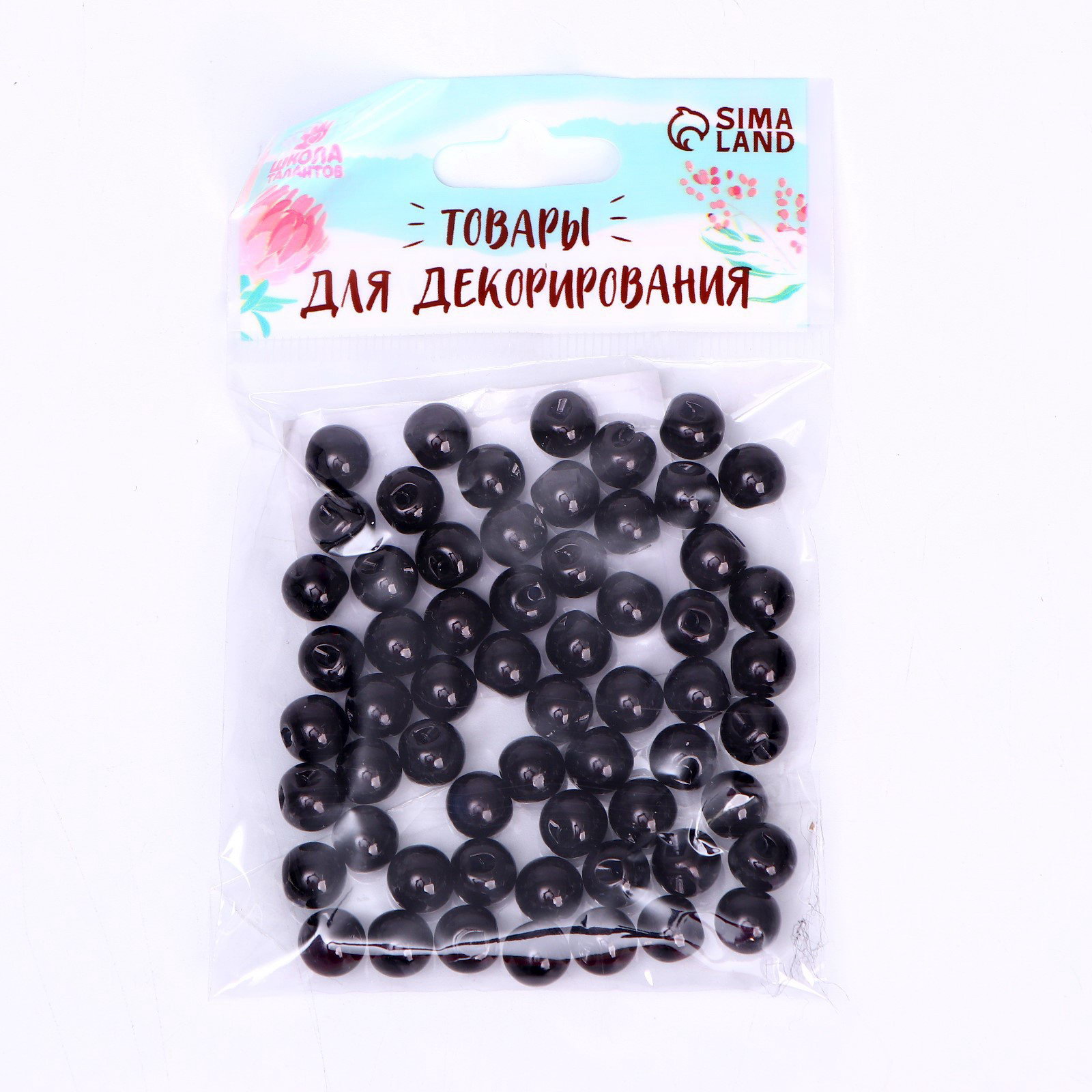 Глаза пришивные, набор 60 шт., размер 1 шт. 0.9 см, чёрные, 9x1x8 см., Школа талантов, Китай