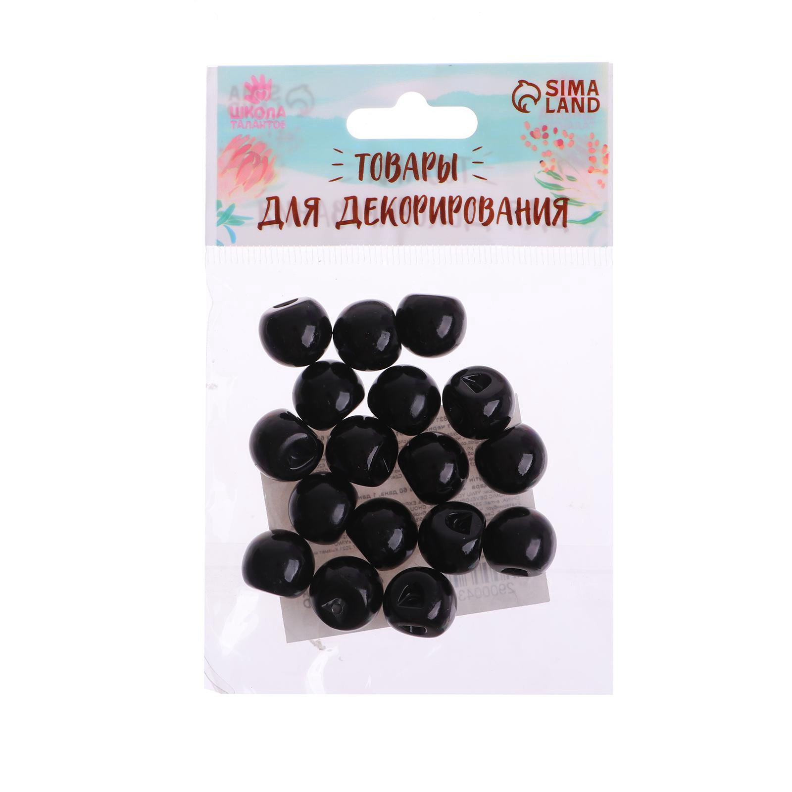Глаза пришивные, набор 18 шт., размер 1 шт. 1.4 см, чёрные, 9x1x8 см., Школа талантов, Китай