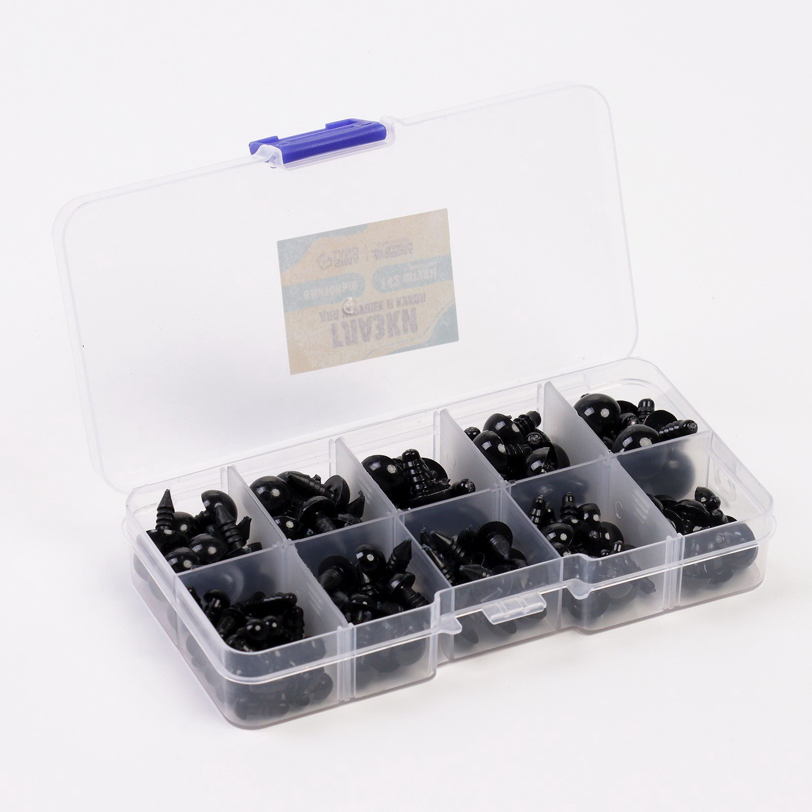 Набор винтовых глазок для кукол и игрушек с заглушками, цвет черный, 142 шт, 7x14x3 см., Школа талантов, Китай