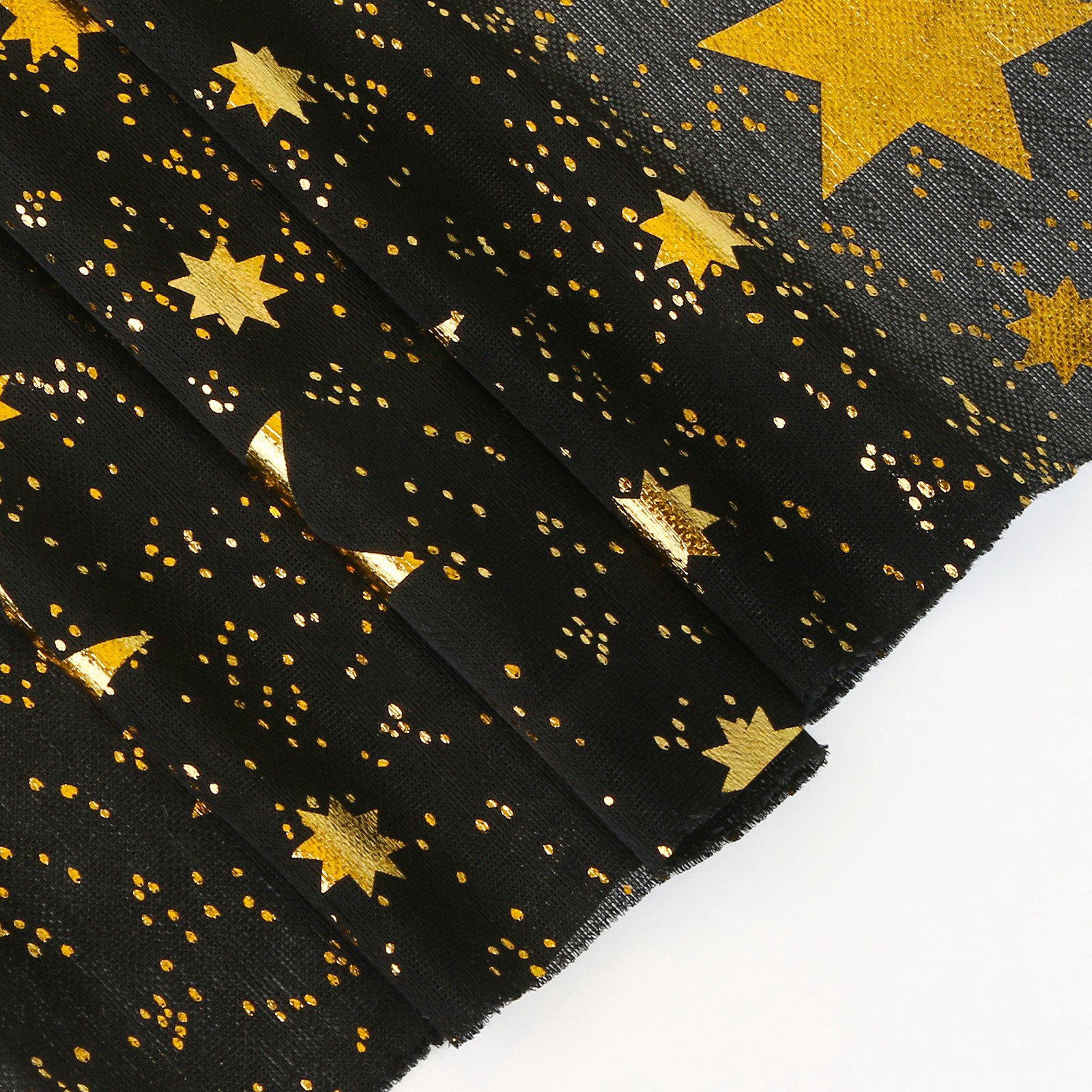 Цвет: Золотистый, Чёрный Размер упаковки: 17 x 1 x 22 см. Температурное ограничение: Нет Вид комплектующих: Ткань Тематика: Звёзды Ткань: Трикотин Набор: Нет Плотность, г/?2: 60 Длина, см: 50 Ширина, см: 50 tnved: 5208130000 tnved: 5208130000 Трикотин это отличный материал для творческих проектов. Он подходит для различных рукоделий, включая вышивки, аппликации и декоративные элементы. Изделия из этого материала выглядят аккуратно и красиво. Идеи использования