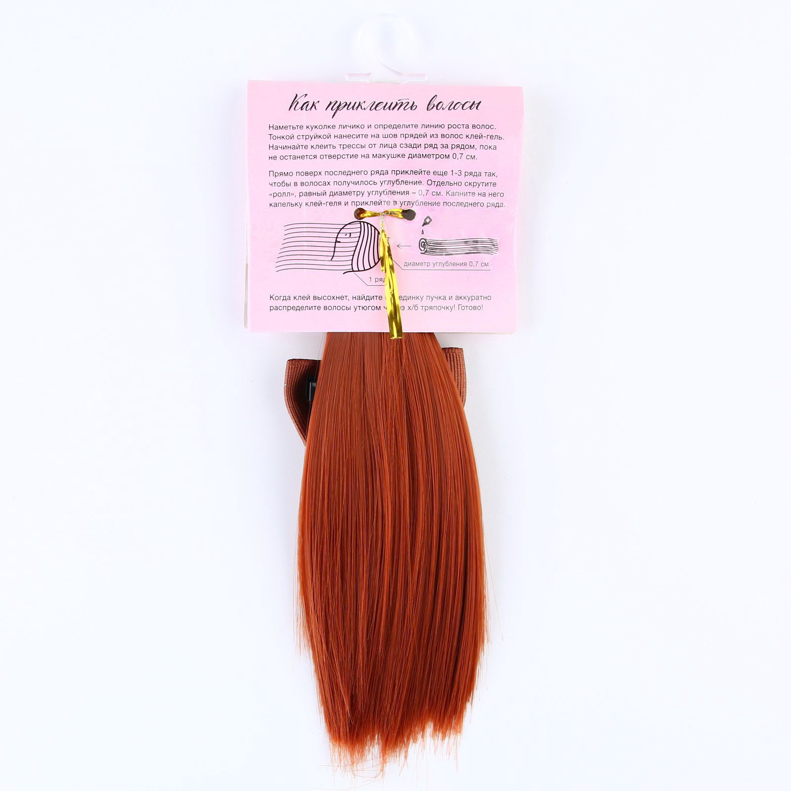 Волосы - тресс для кукол "Рыжие прямые", длина волос: 15 см, ширина: 100 см, 0.5x15x100 см., Арт Узор, Китай
