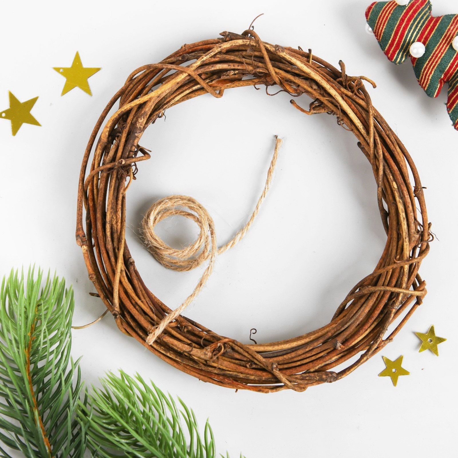В наборе: элементы из фетра, лента для подвеса, венок из веточек, изображение готовой поделки. | ||