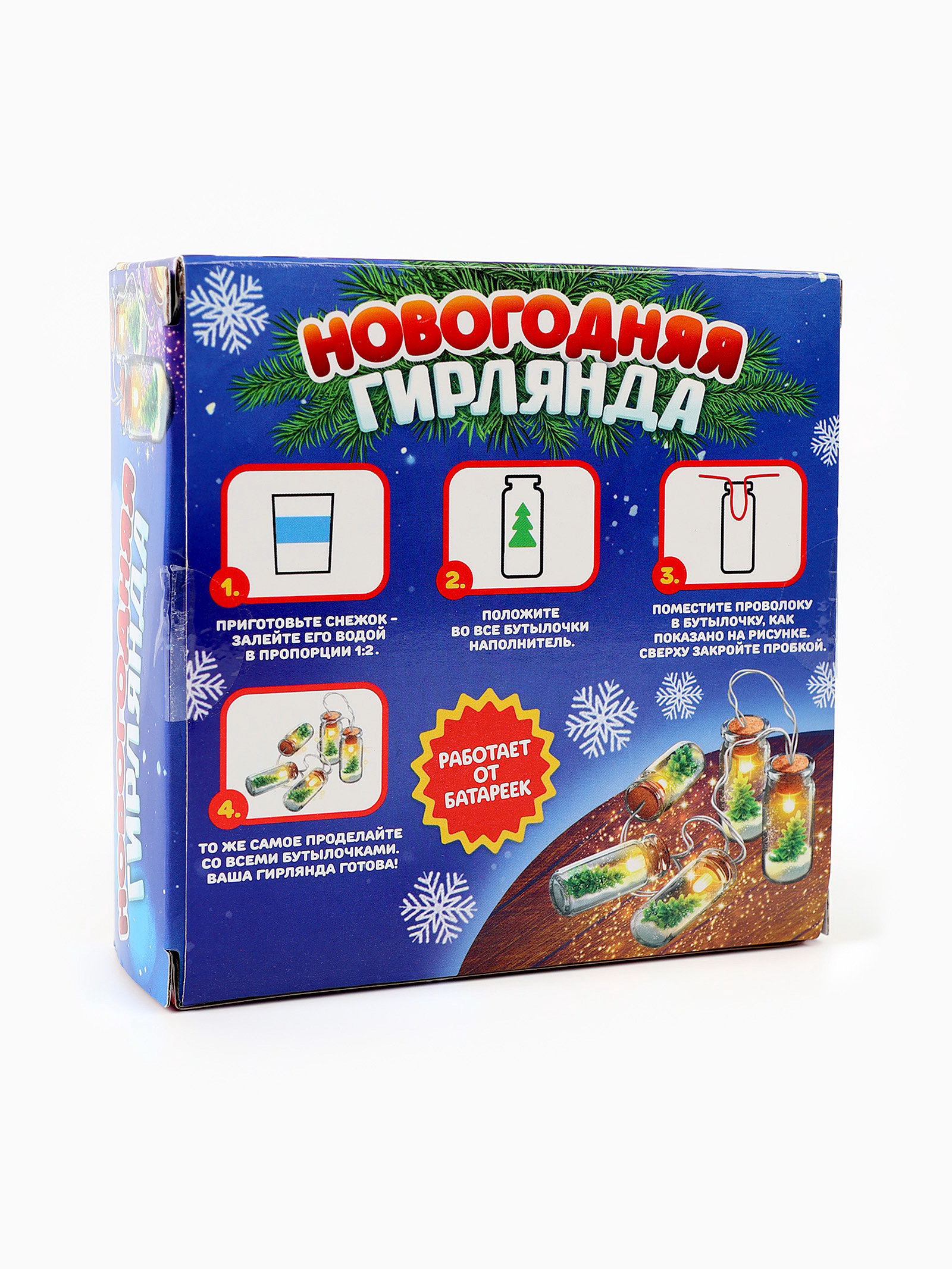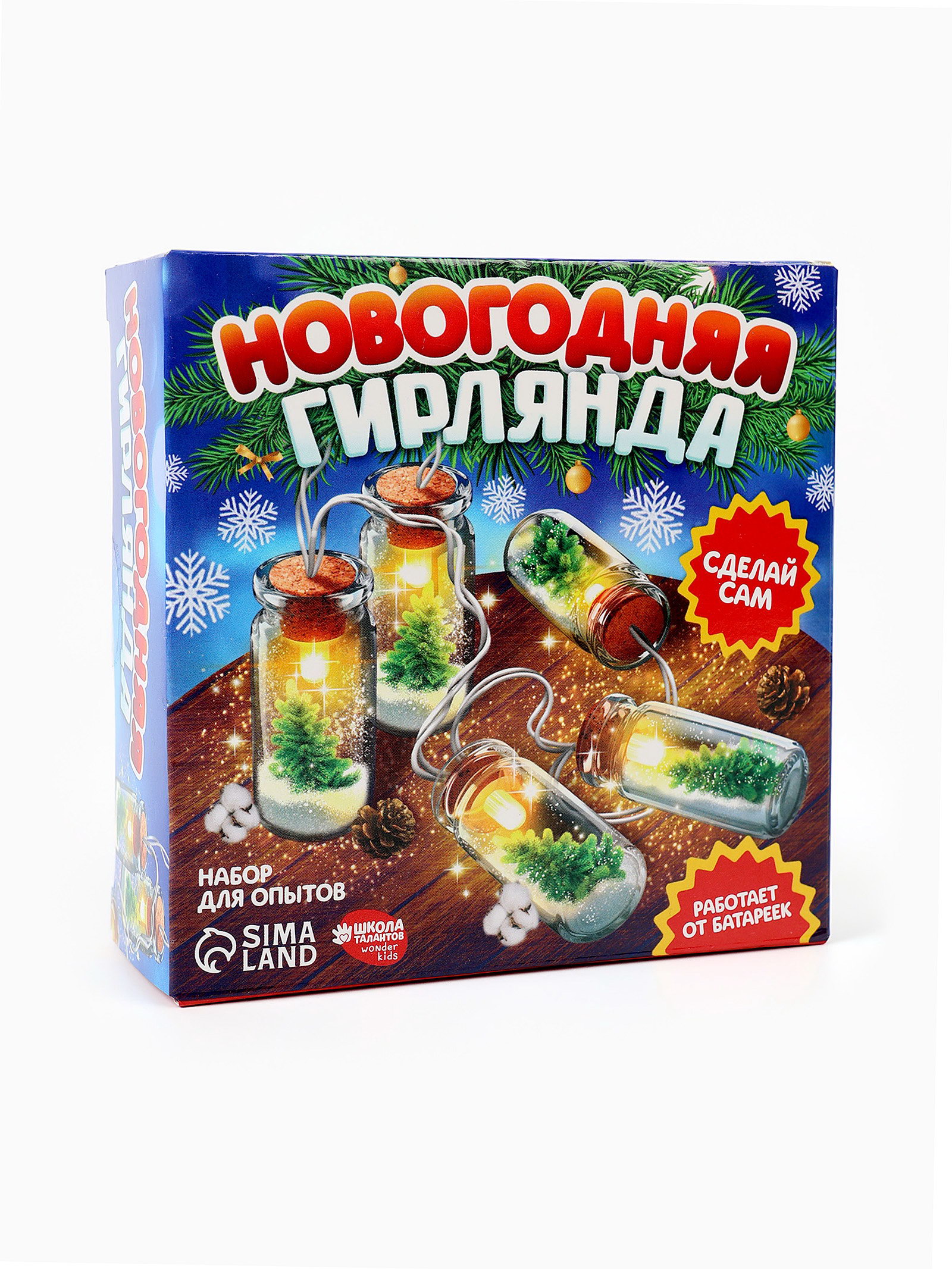 Набор для опытов "Новогодняя гирлянда", с искусственный снегом, работает от батареек, 4.5x12x12 см., Школа талантов, Китай