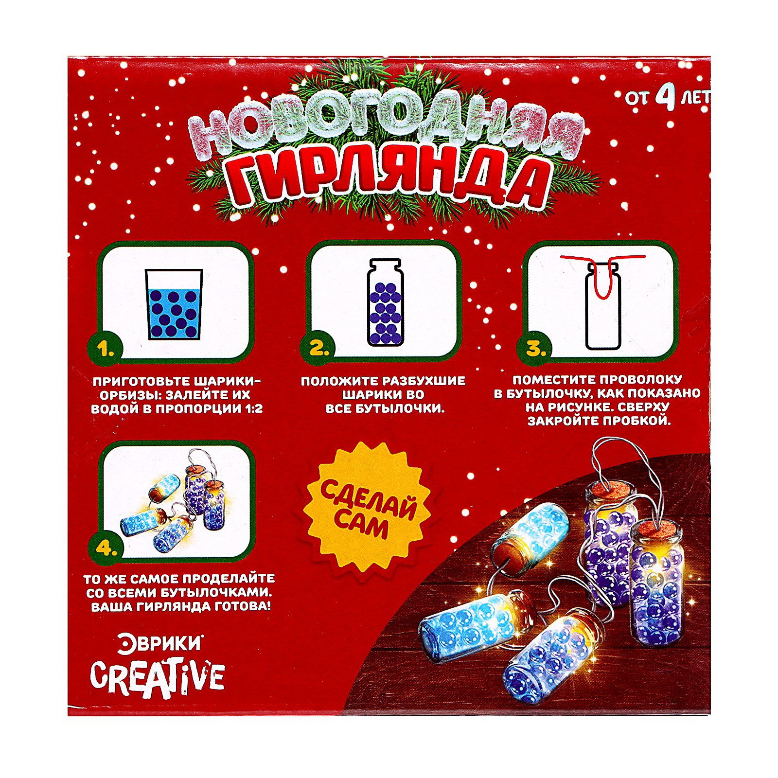 Набор для опытов "Новогодняя гирлянда", с шариками орбиз, работает от батареек, 4.5x12x12 см., Школа талантов, Китай