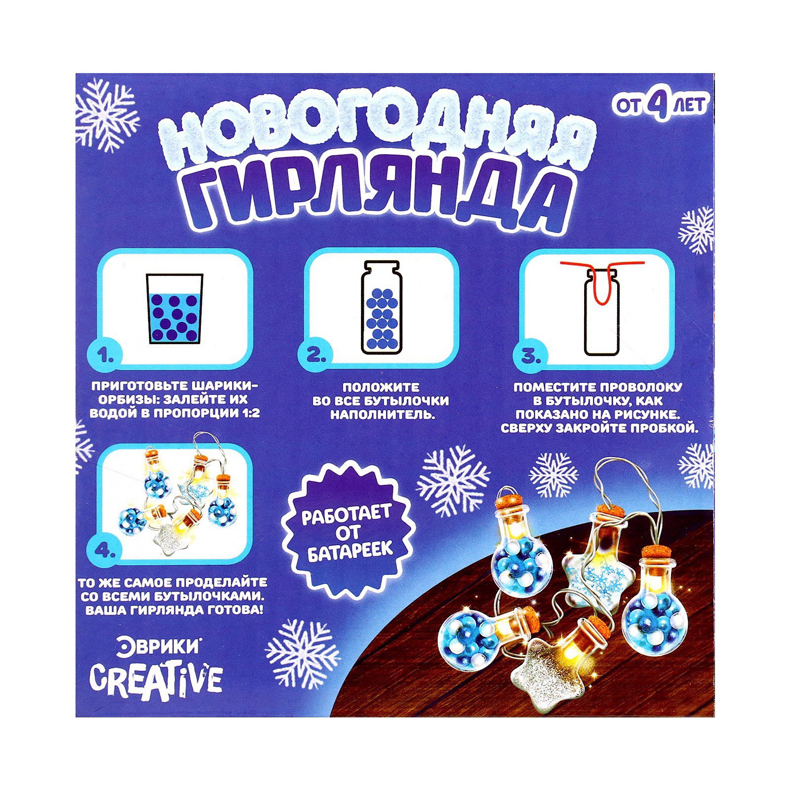 Набор для опытов "Новогодняя гирлянда", звёздочки и шарики, 12x5x12 см., Школа талантов, Китай