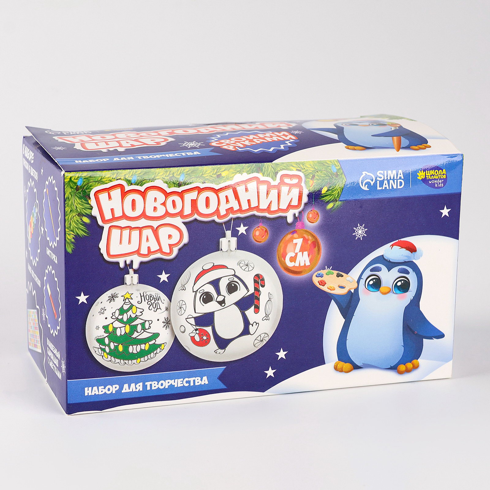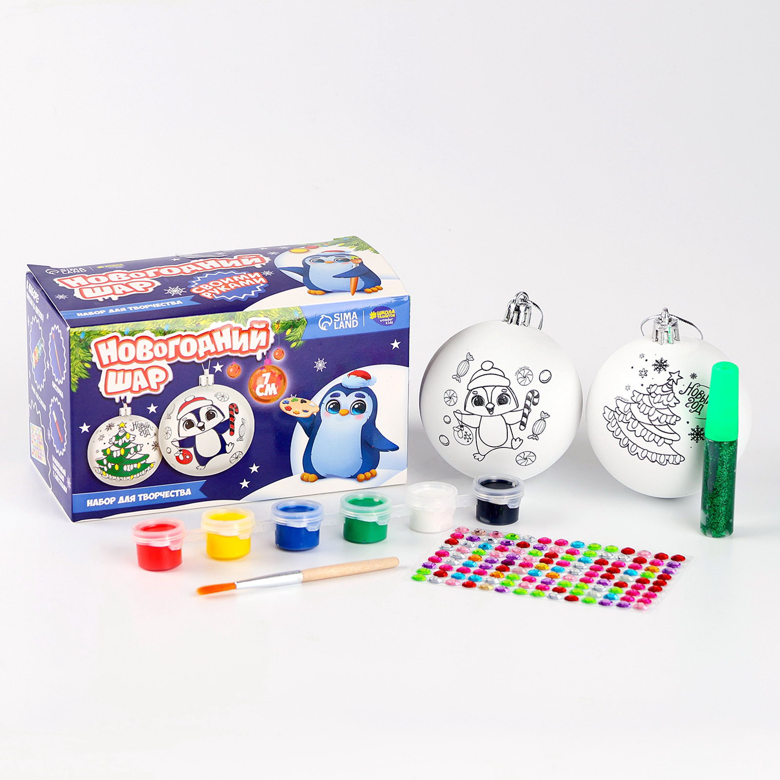 Ёлочные шары под раскраску на новый год "Время сказки", d=7 см, 2 шт, краски, набор для творчества, 8.5x14.5x7.4 см., Школа талантов, Китай