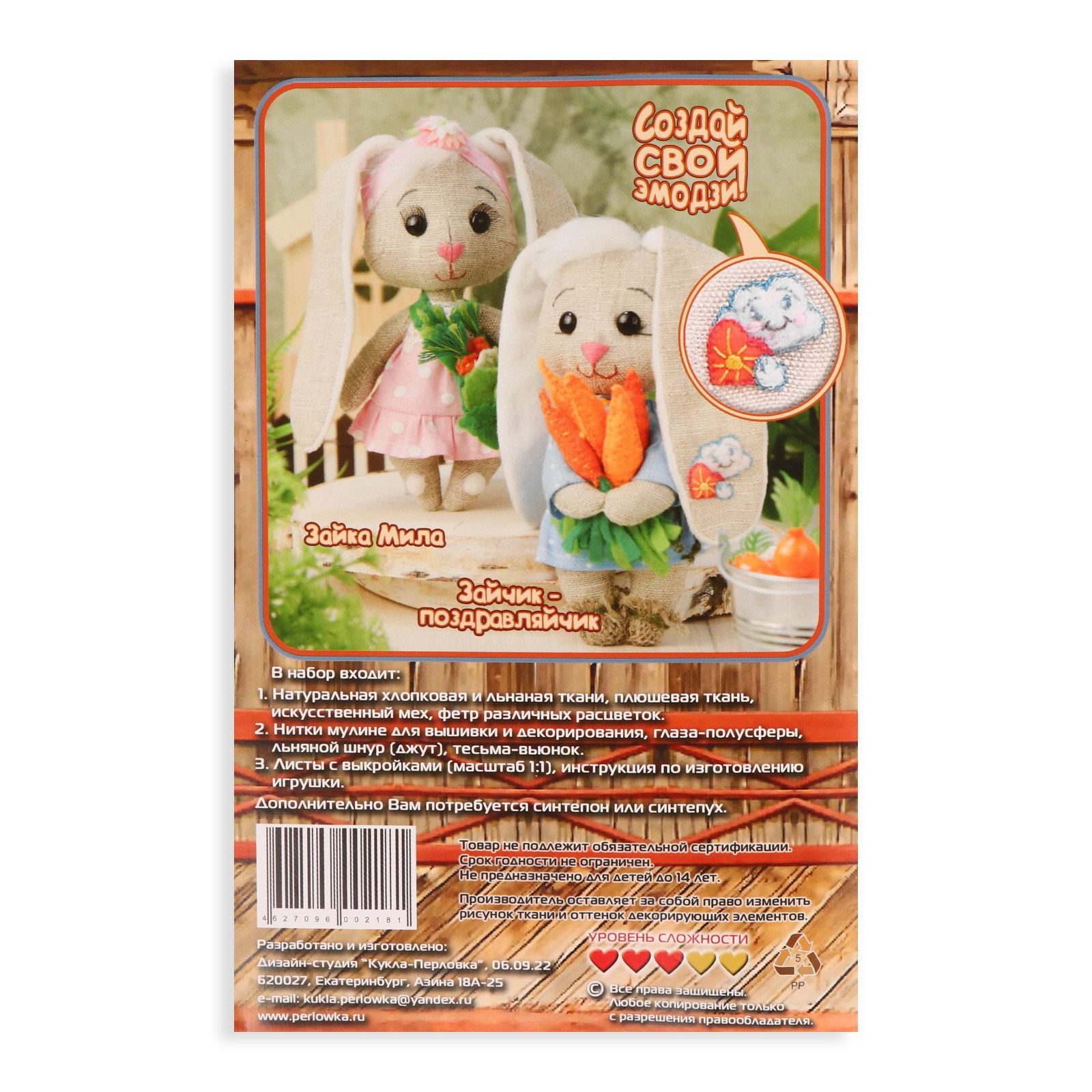 Набор для изготовления текстильной игрушки "Зайчик-поздравляйчик", Кукла Перловка, Россия