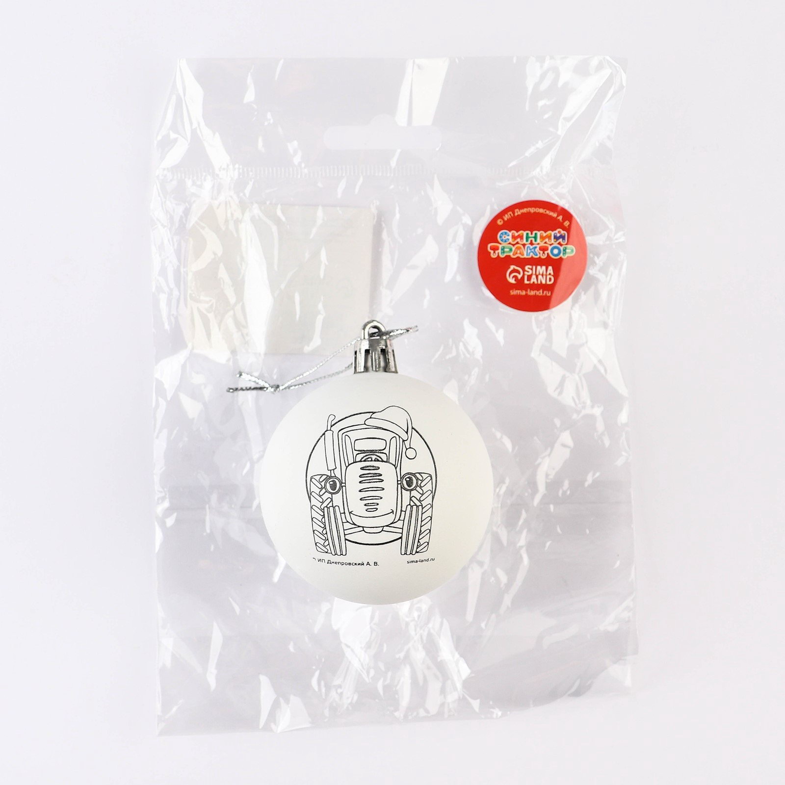 Ёлочный шар под раскраску на новый год d=5.5 см, набор для творчества, 5.5x7x5.5 см., Синий трактор, Китай