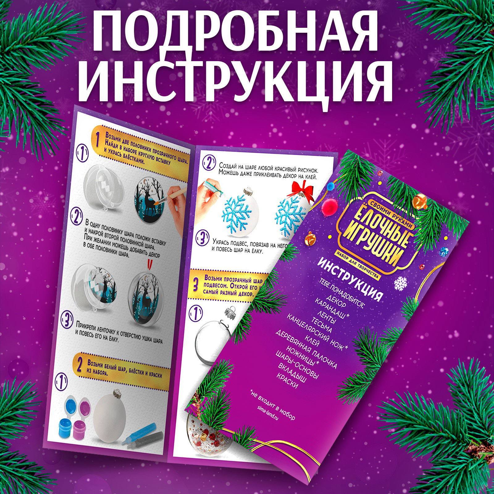 Ёлочный шар своими руками "Ёлочные игрушки", набор для творчества, 4 шара, 18x15x9 см., Эврики, Китай