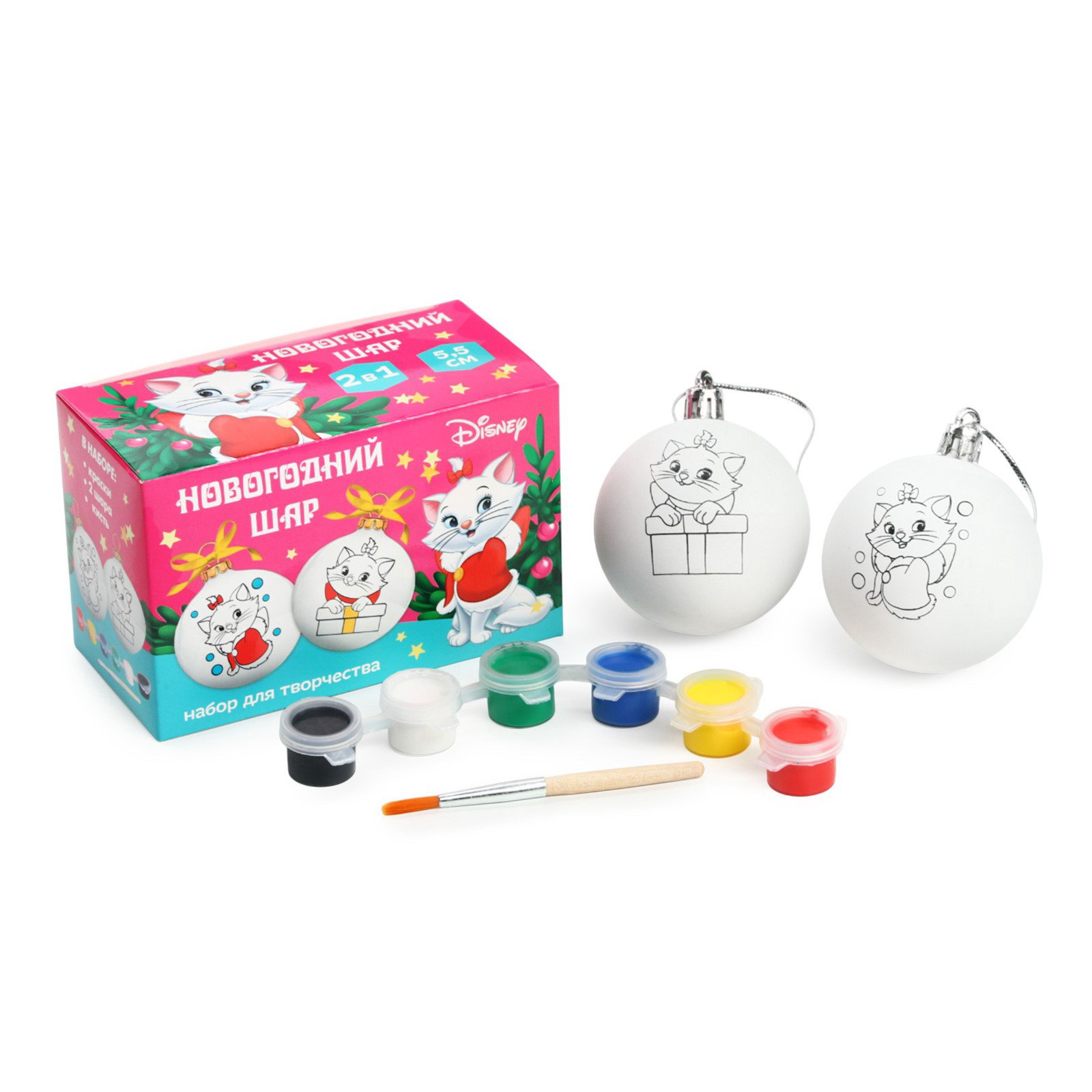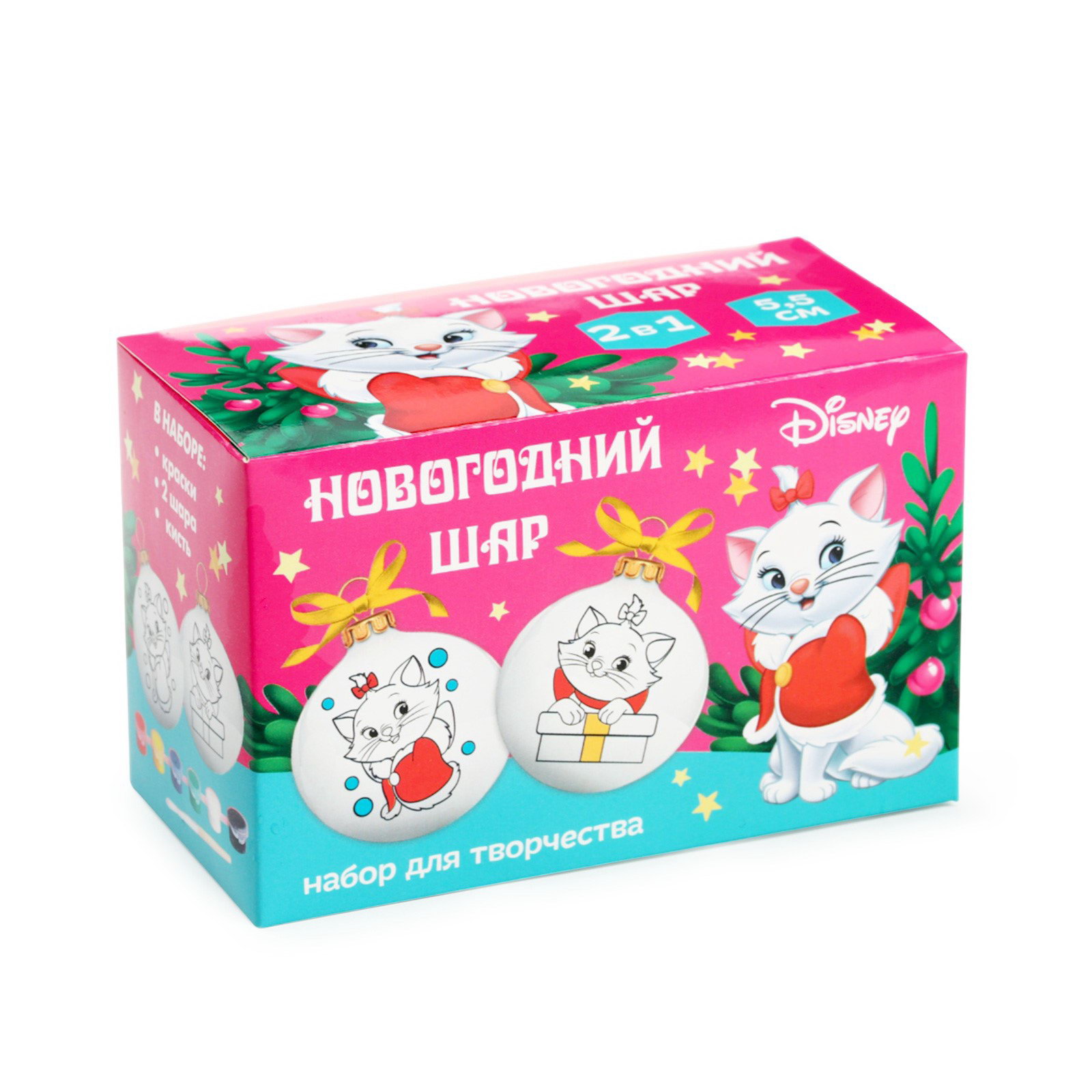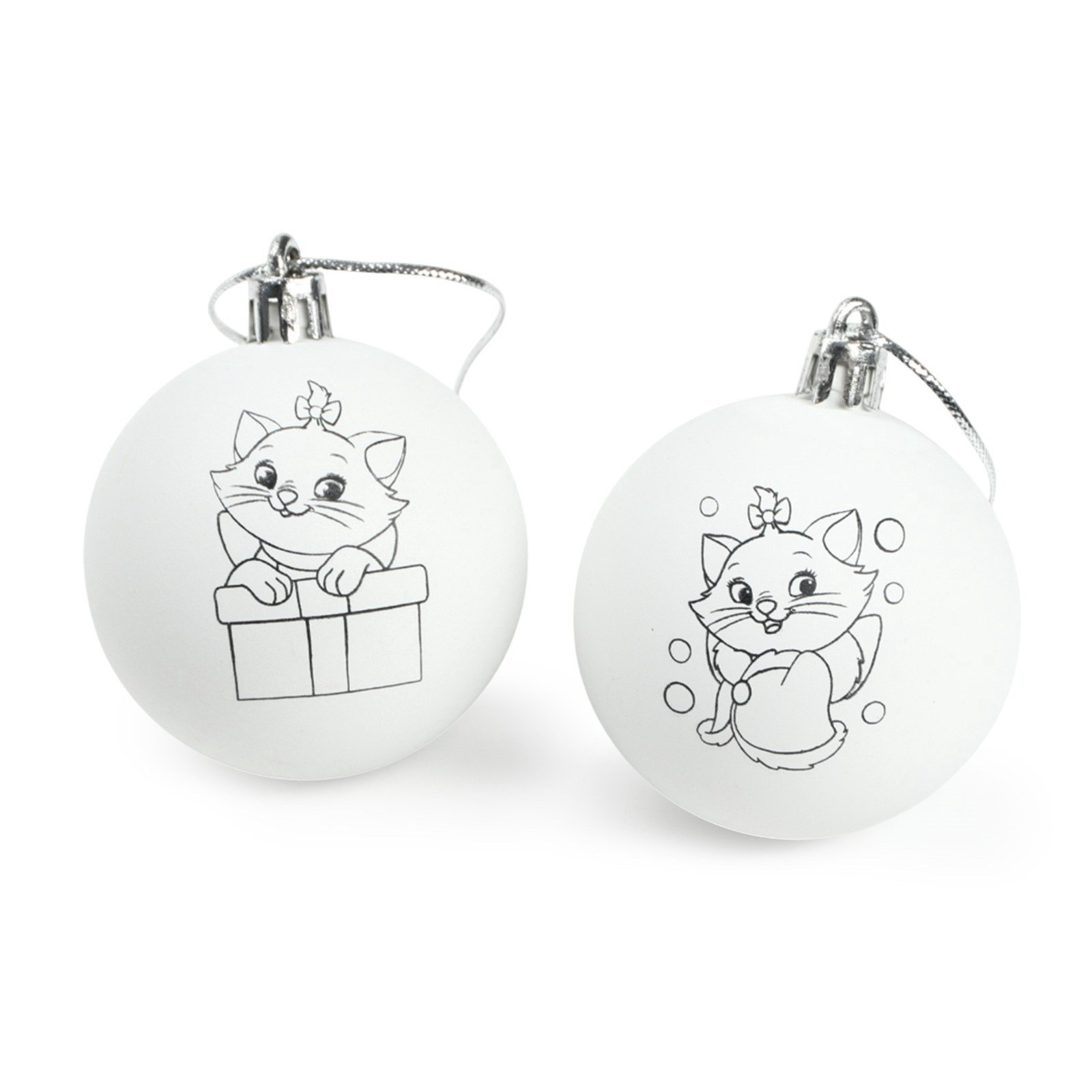 Ёлочные шары под раскраску на новый год "Кошечка Мари". d=5.5 см, 2 шт., краски, набор для творчества, 7.7x12x6.1 см., Disney, Китай