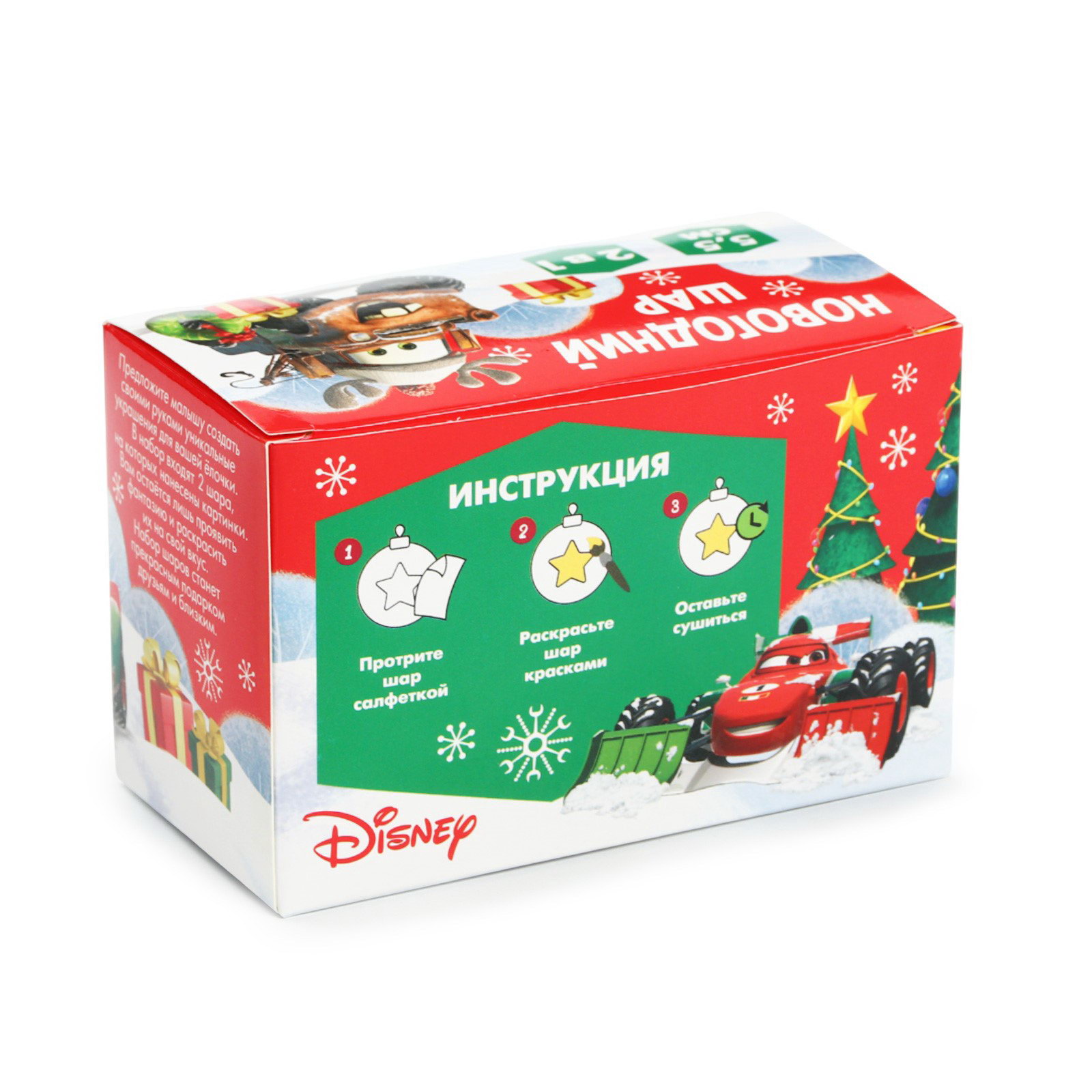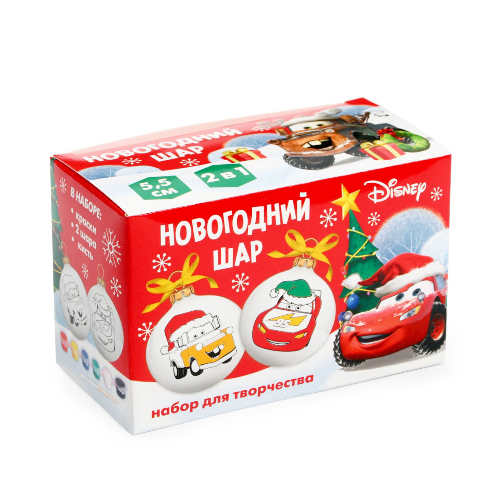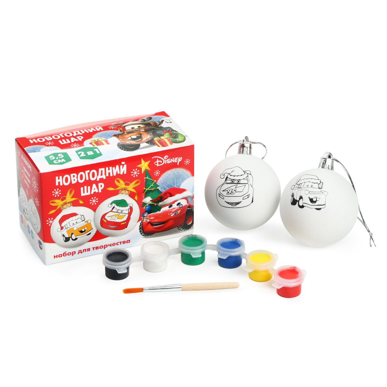 Ёлочные шары под раскраску на новый год "Тачки", d=5.5 см, 2 шт, краски, набор для творчества, 7.7x12x6.1 см., Disney, Китай