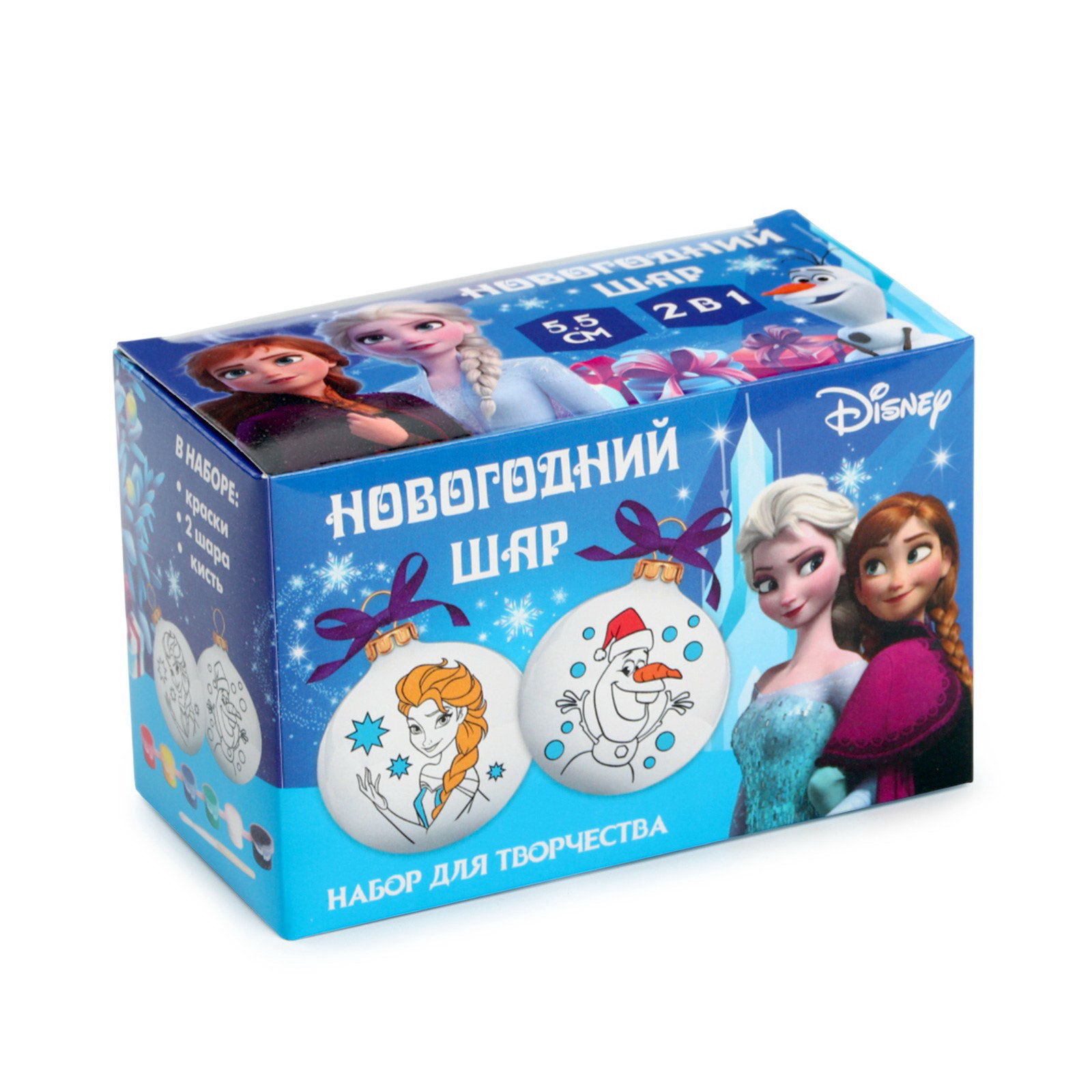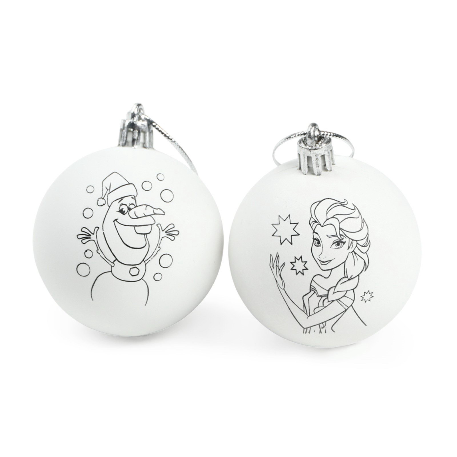 Ёлочные шары под раскраску на новый год "Эльза и Олаф", d=5.5 см, 2 шт., краски, набор для творчества, Холодное Сердце, 7.7x12x6.1 см., Disney, Китай