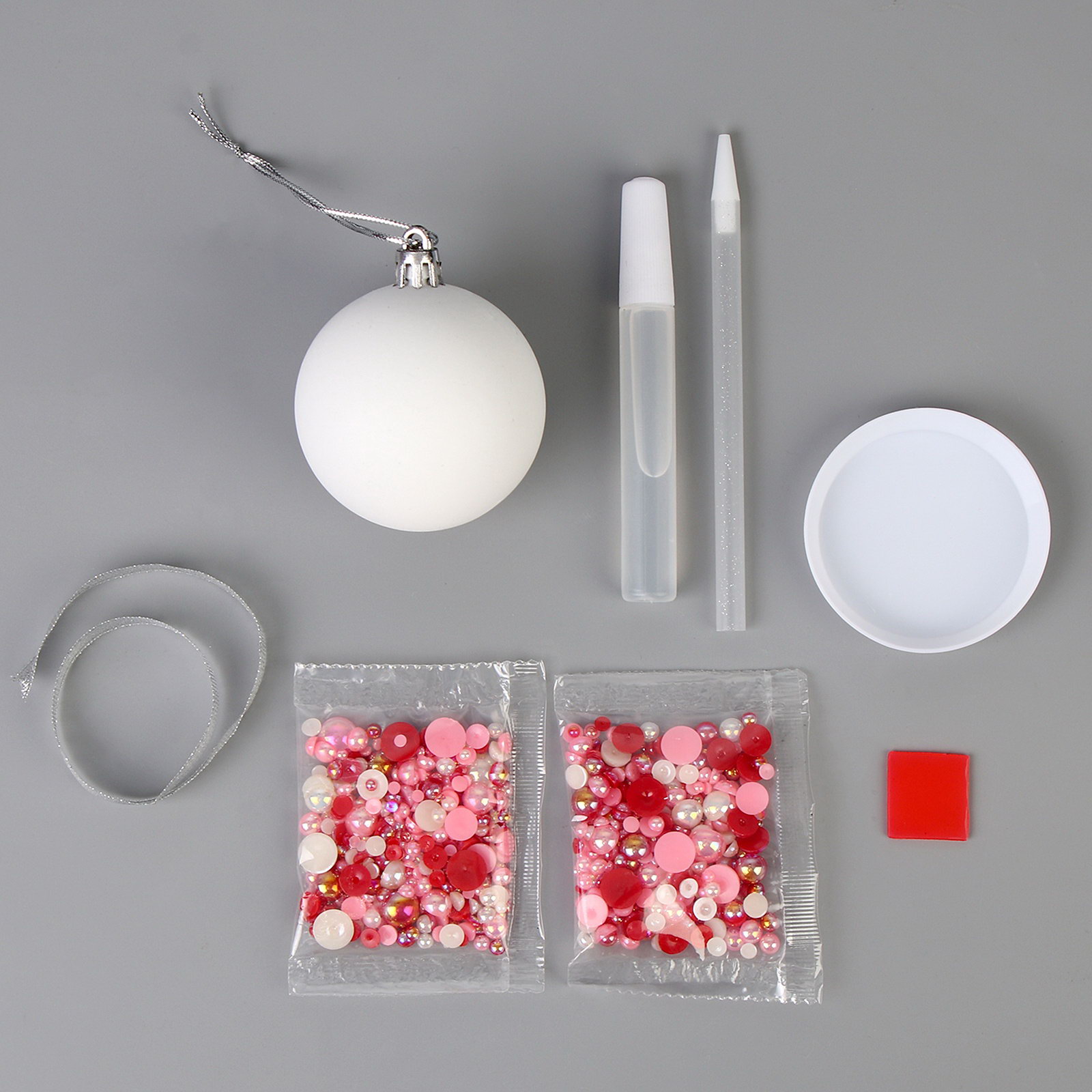 Ёлочный шар своими руками на новый год. Декор полубусинами "Красный", набор для творчества, 8.5x8.5x8.5 см., Школа талантов, Китай