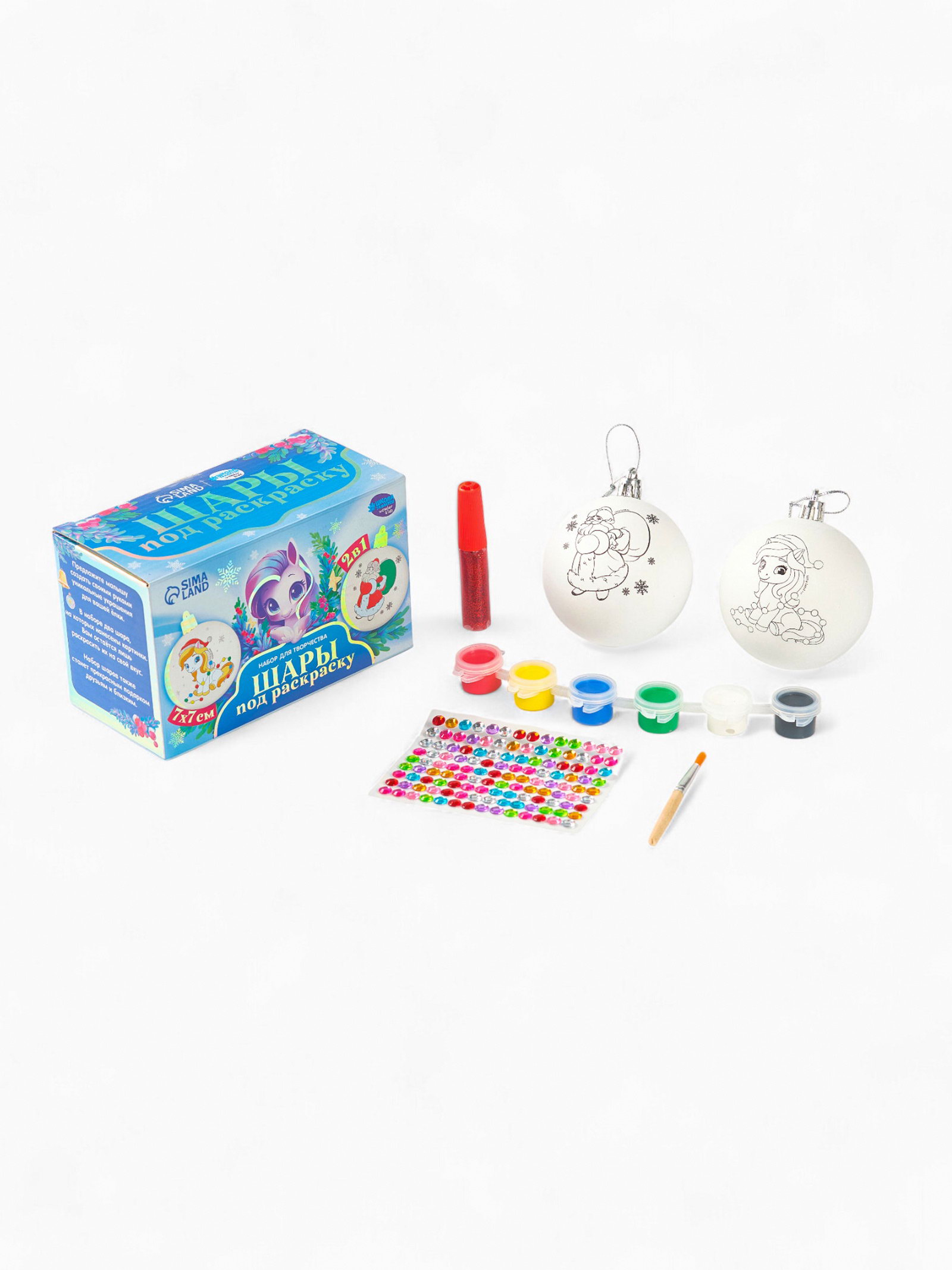 Елочные шары под раскраску "Исполнения желаний", краски, 7 см, 2 шт., набор для творчества, 8.5x14.5x7.4 см., Школа талантов, Китай