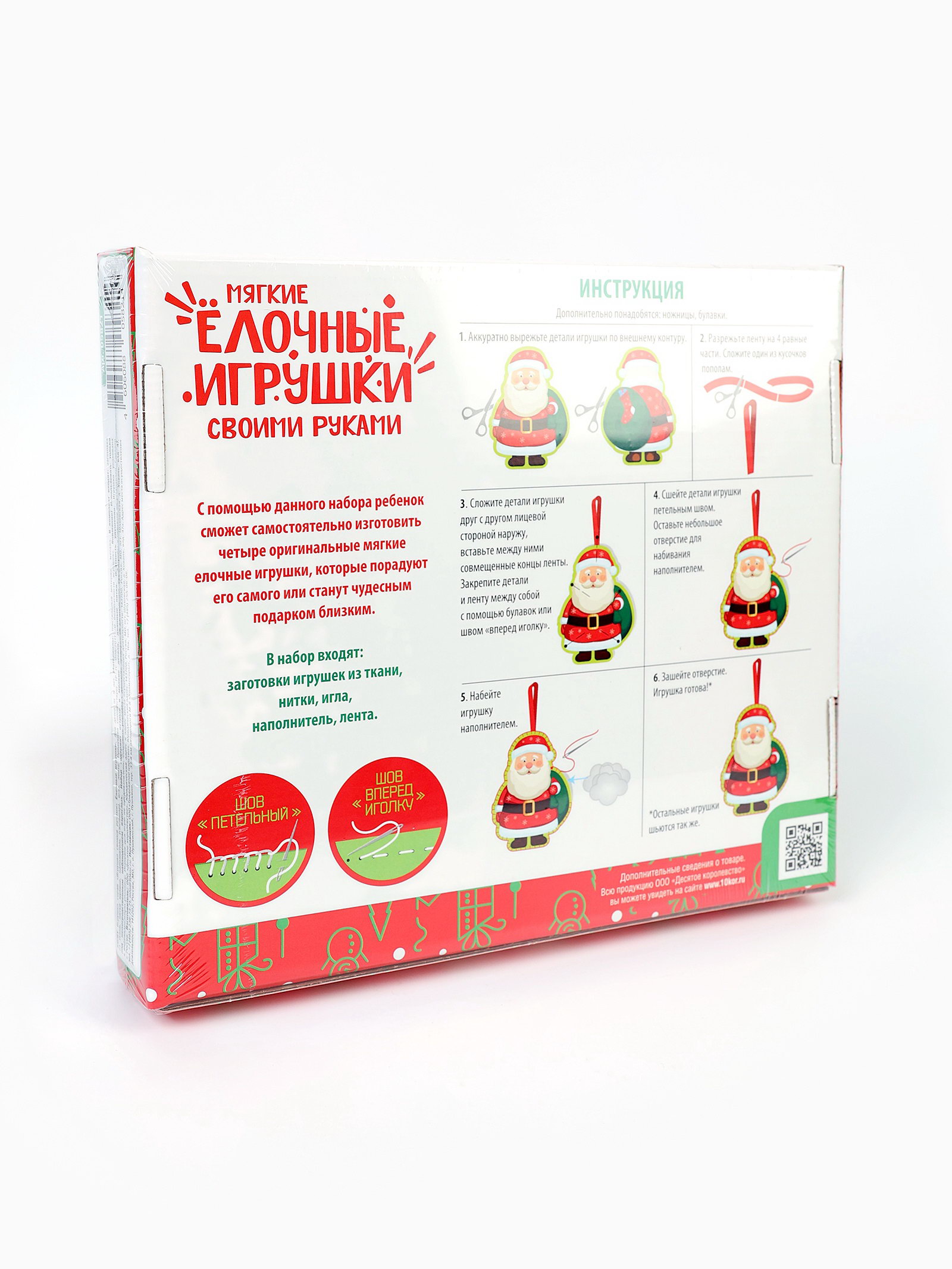 Набор для творчества. Мягкая игрушка из ткани "Ёлочные игрушки" 4 шт, Десятое Королевство, Россия