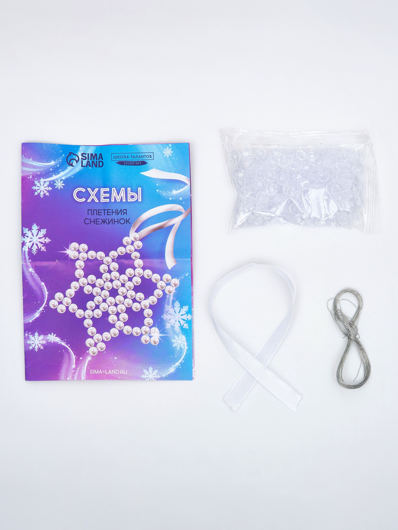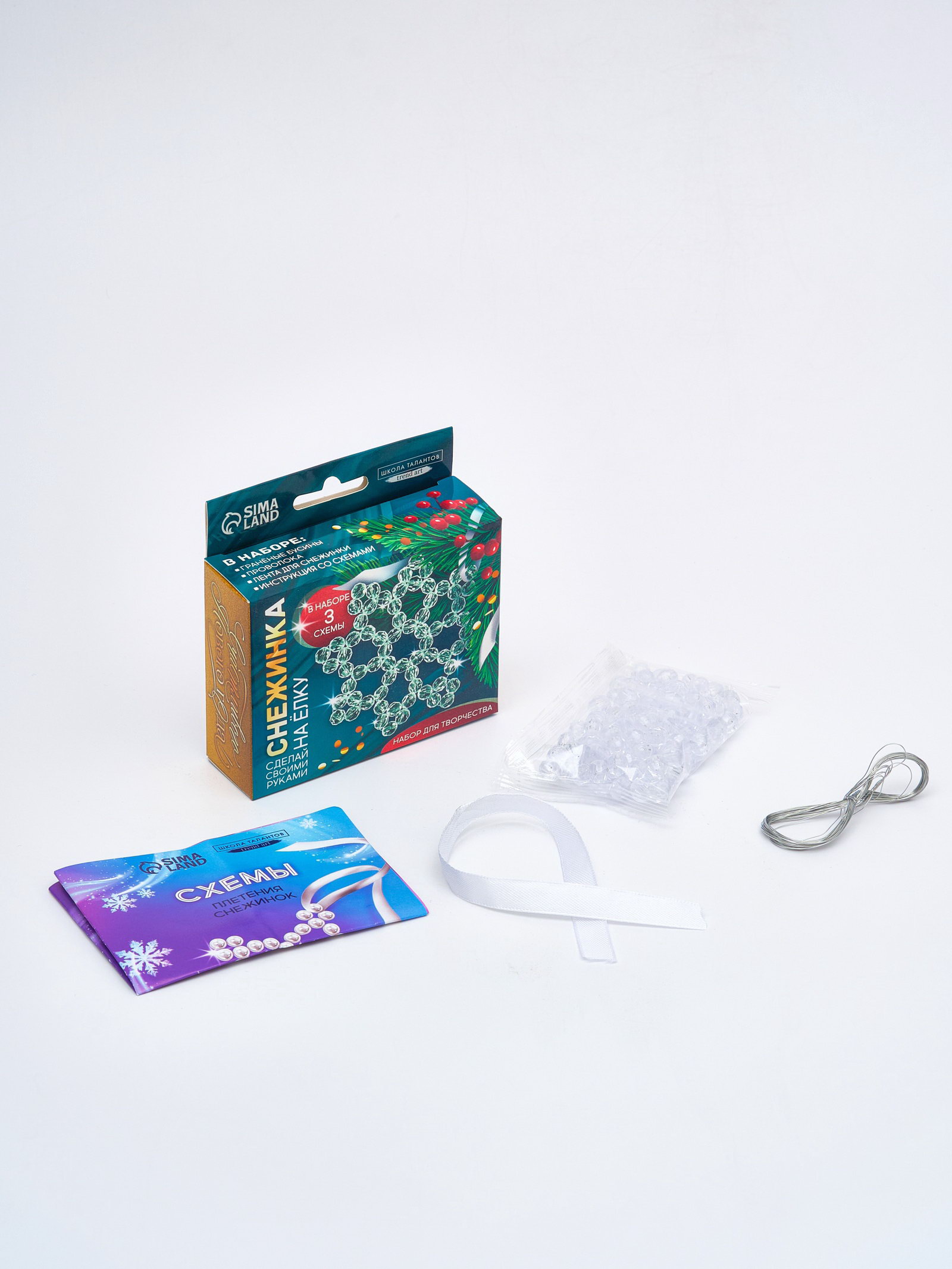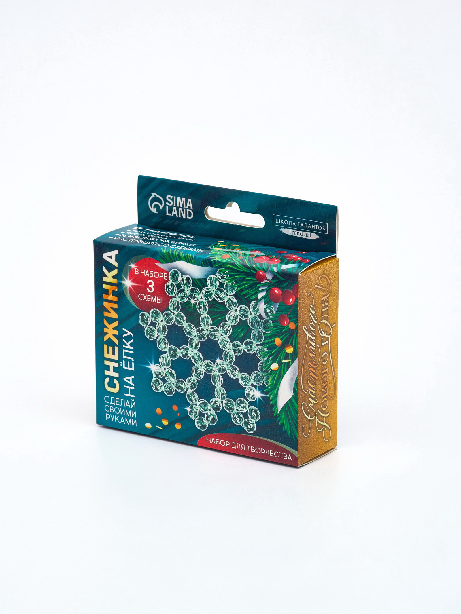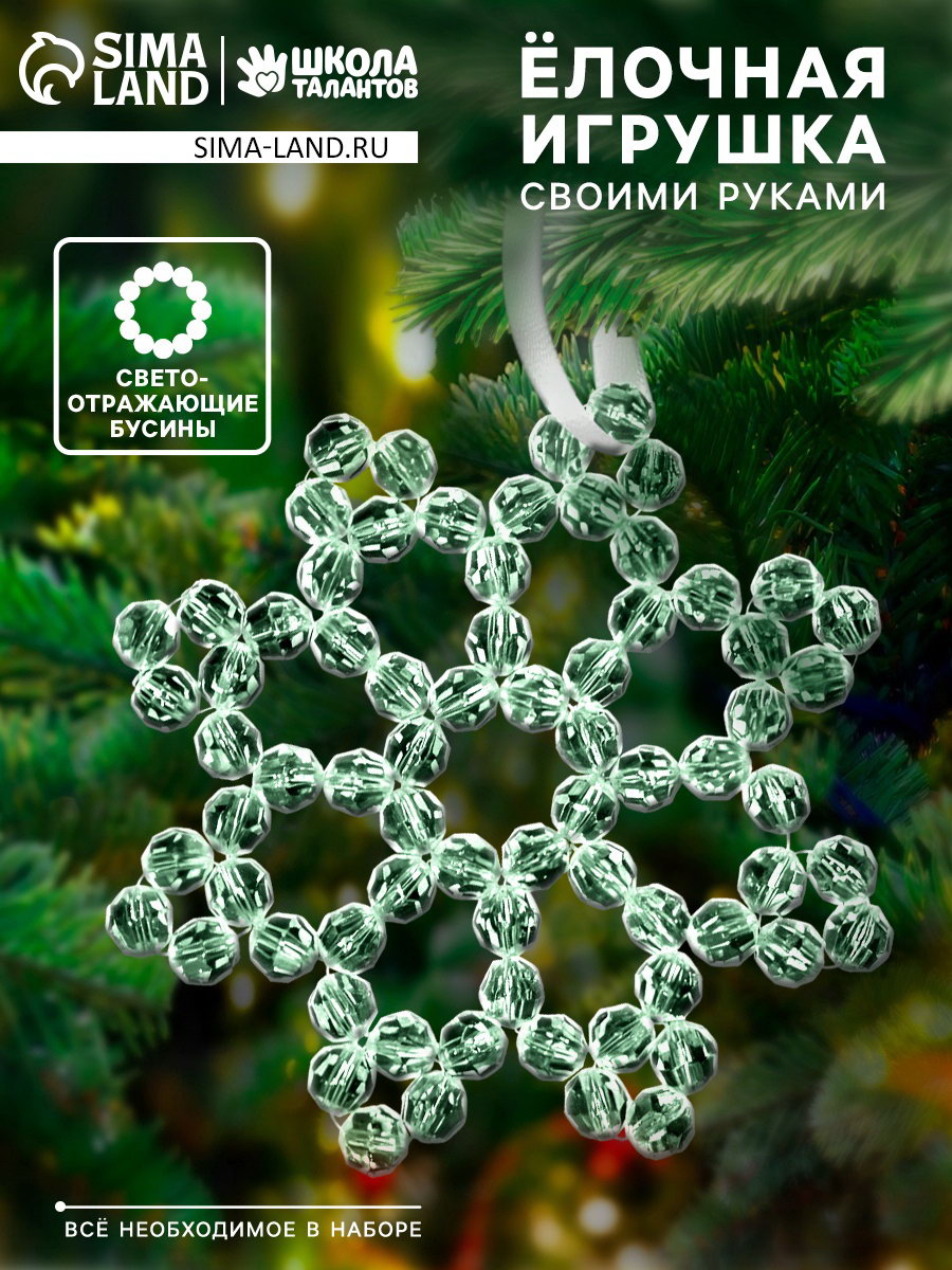 Набор для творчества "Снежинка на ёлку" из прозрачных светоотражающих бусин, 10.6x10.2x2.8 см., Школа талантов, Китай