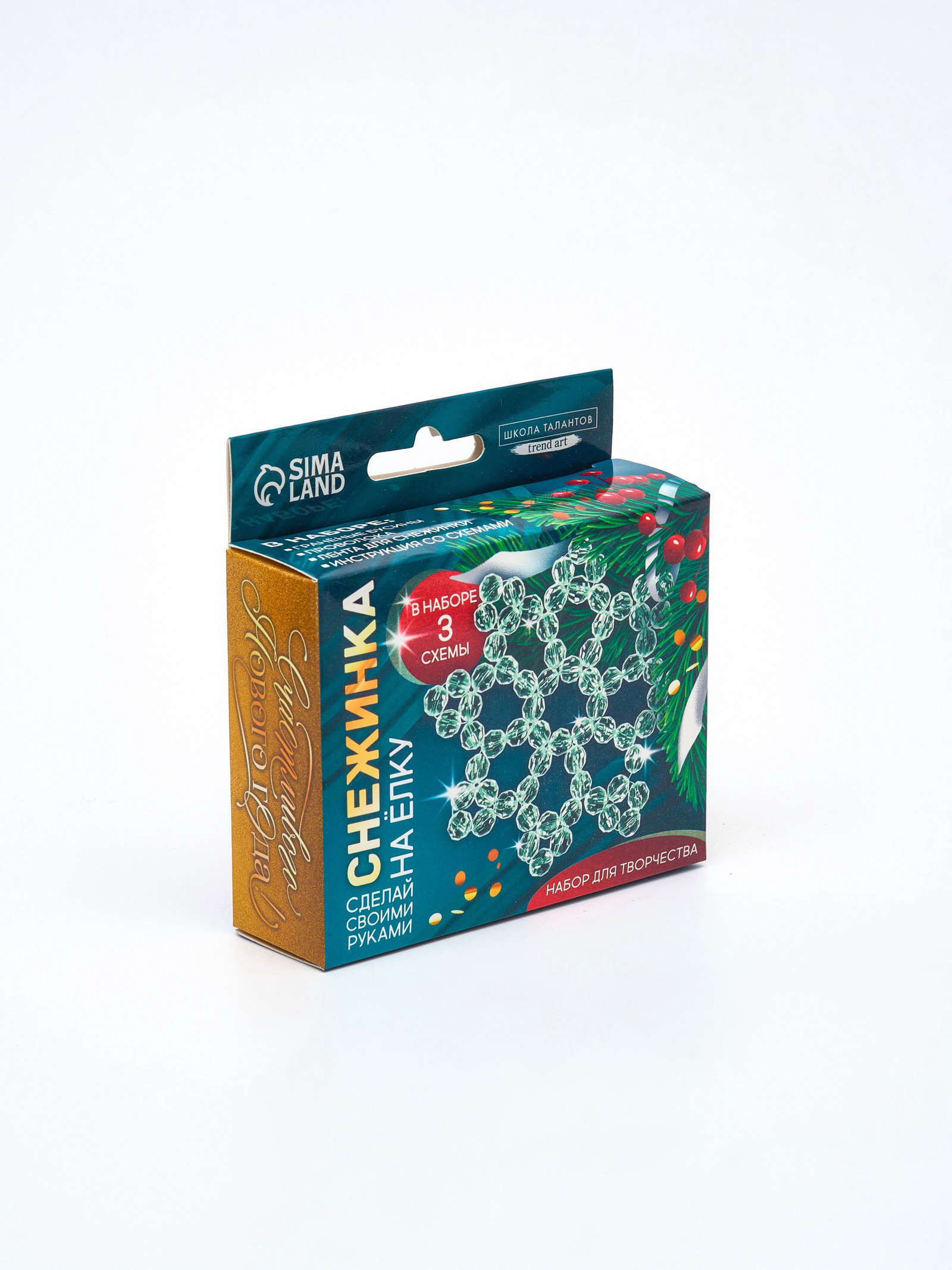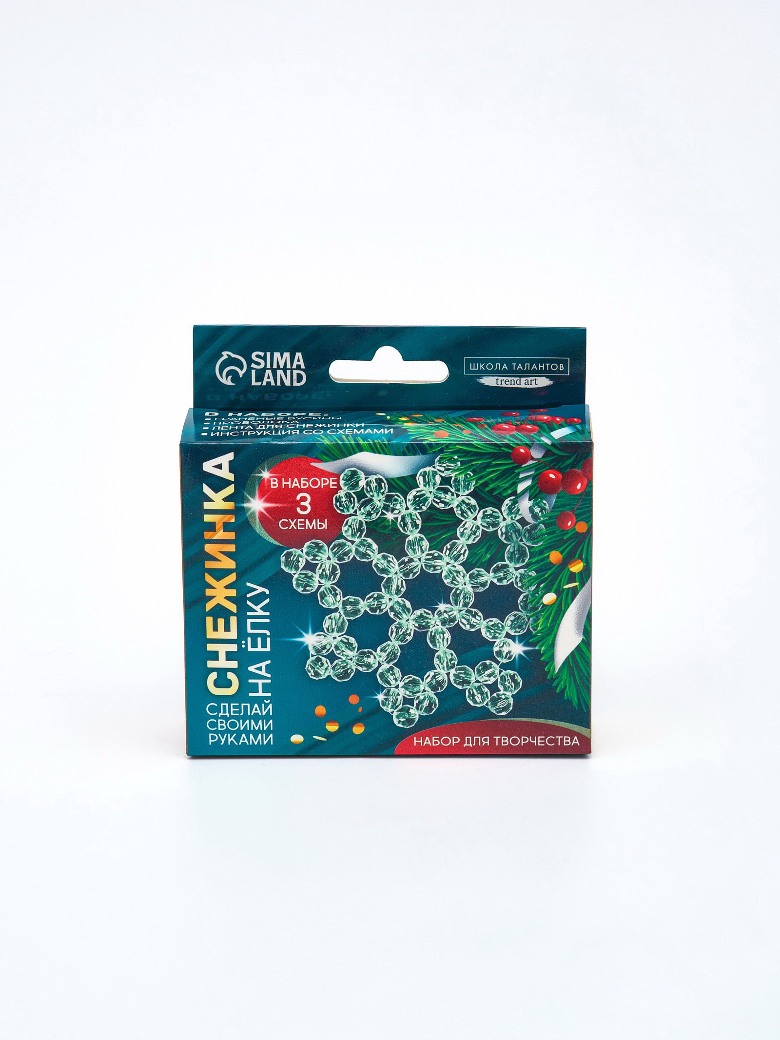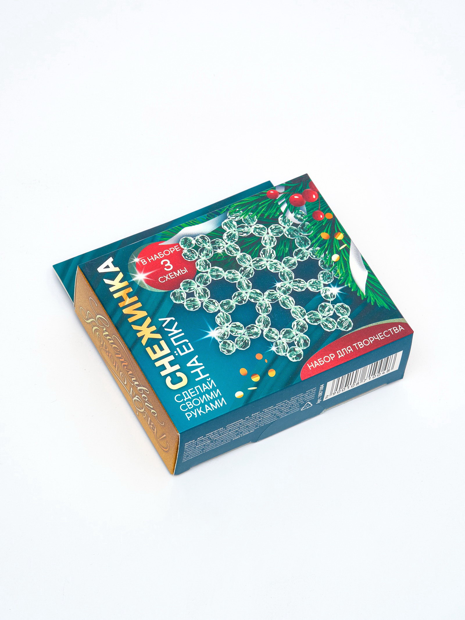 Набор для творчества "Снежинка на ёлку" из прозрачных светоотражающих бусин, 10.6x10.2x2.8 см., Школа талантов, Китай