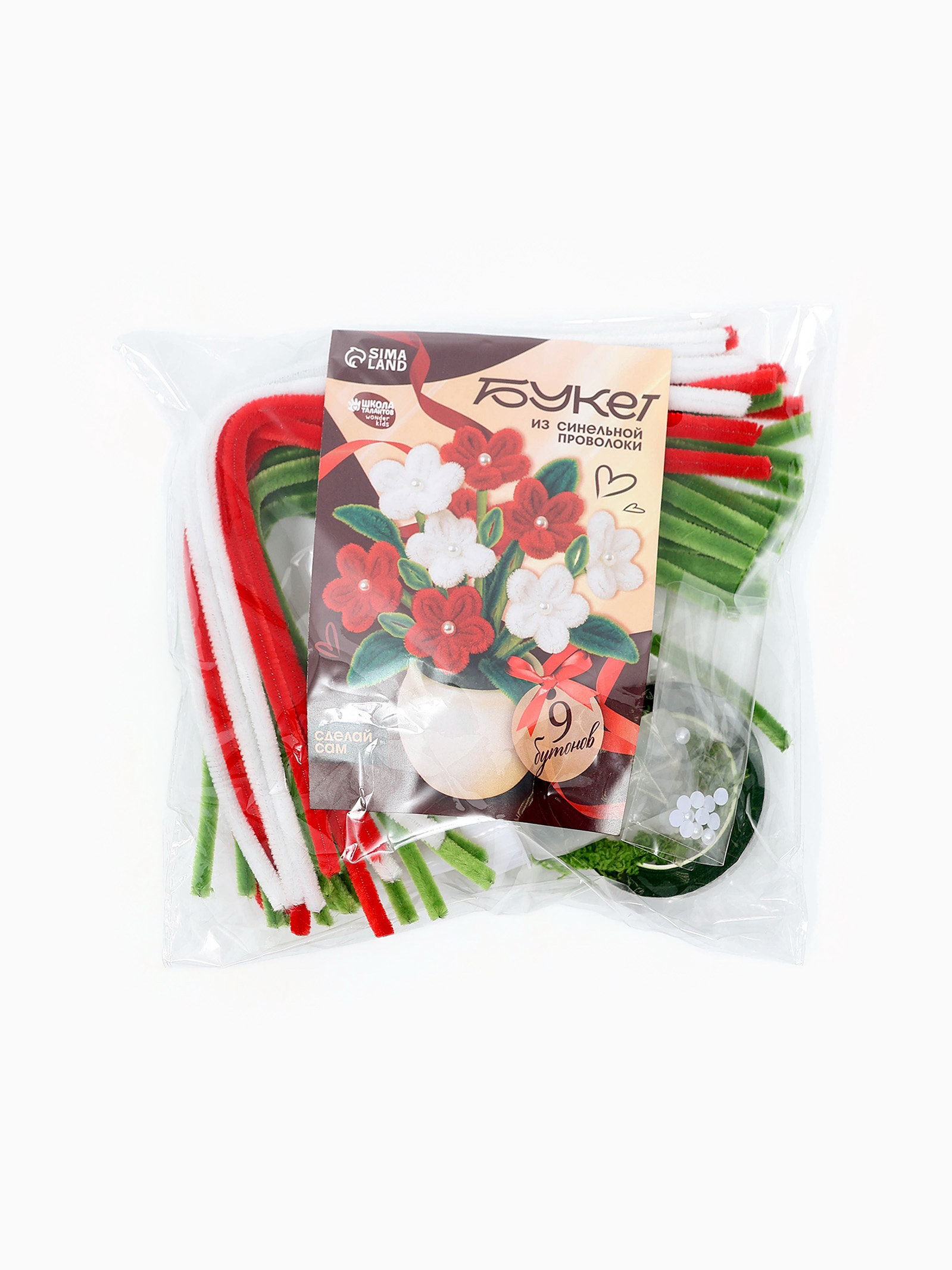 Возраст: Для взрослых, Для детей Размер упаковки: 16 x 7 x 20 см. tnved: 9503007000 Вид набора: Из синельной проволоки Создайте очаровательный букет своими руками и украсьте интерьер милым декоративным акцентом. Особенности: