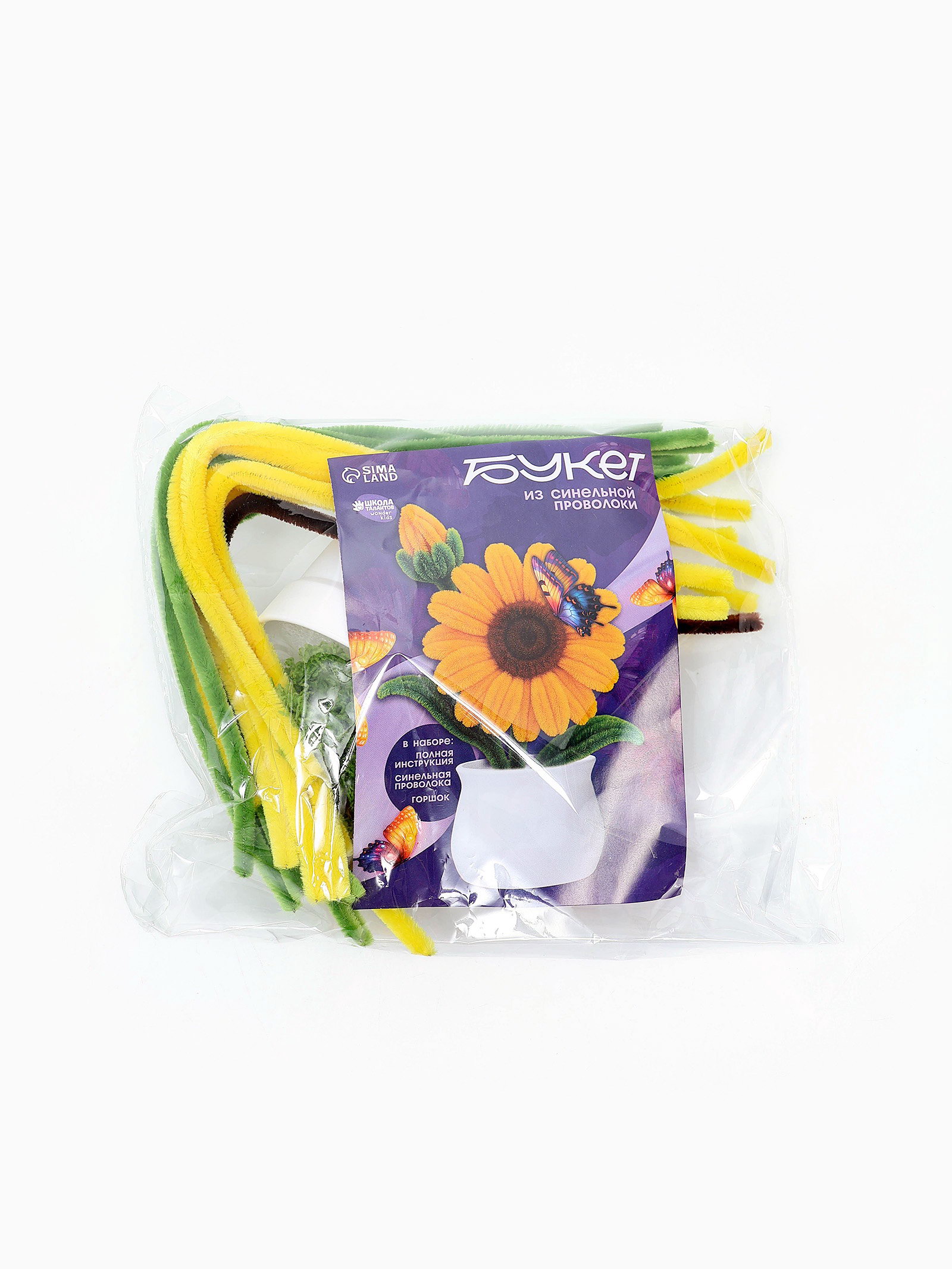 Набор для творчества, букет из синельной проволоки, желтый цветок, 29x21x7 см., Школа талантов, Китай