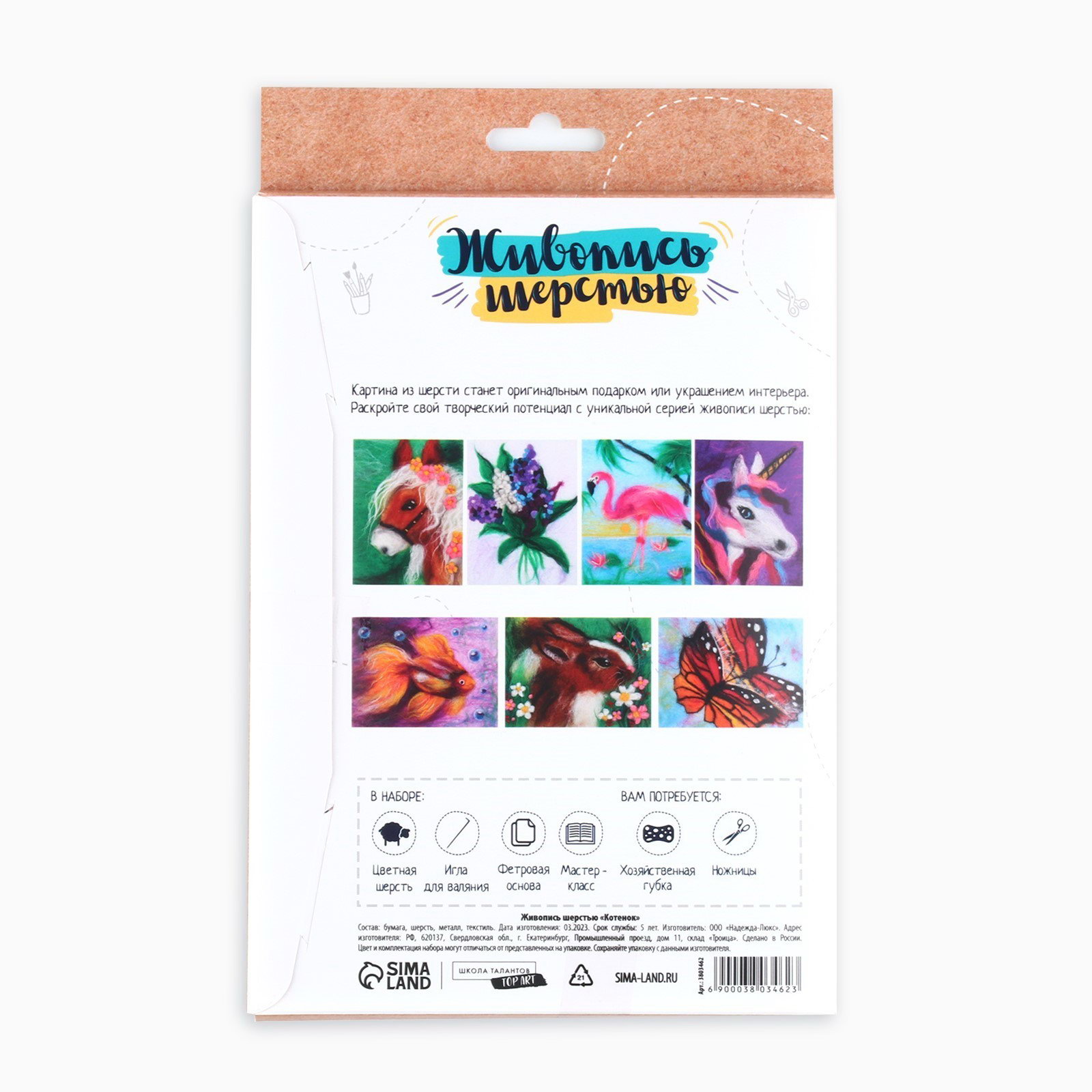 Валяние из шерсти. Картина "Котёнок", А5, набор для творчества, 15.5x1x24.5 см., Школа талантов, Россия