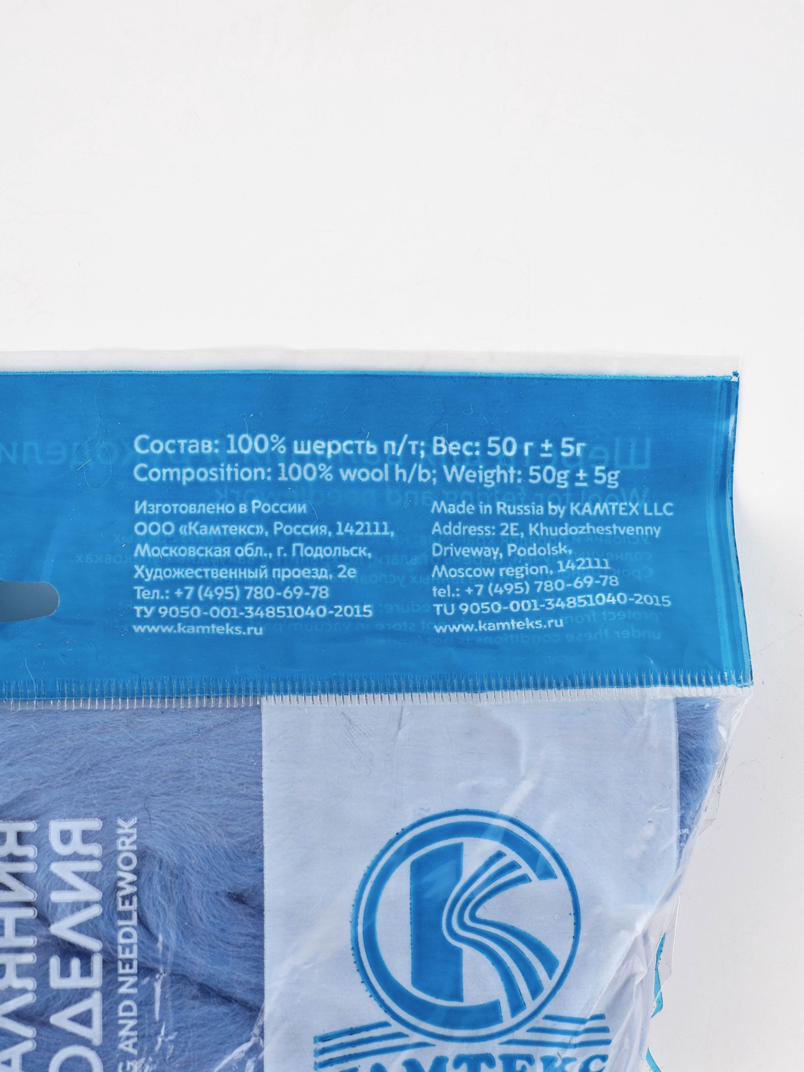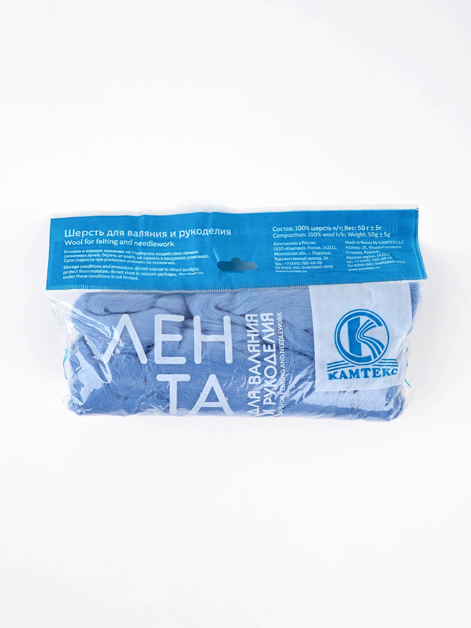 Шерсть для валяния 100% полутонкая шерсть 50 гр, Камтекс, Россия