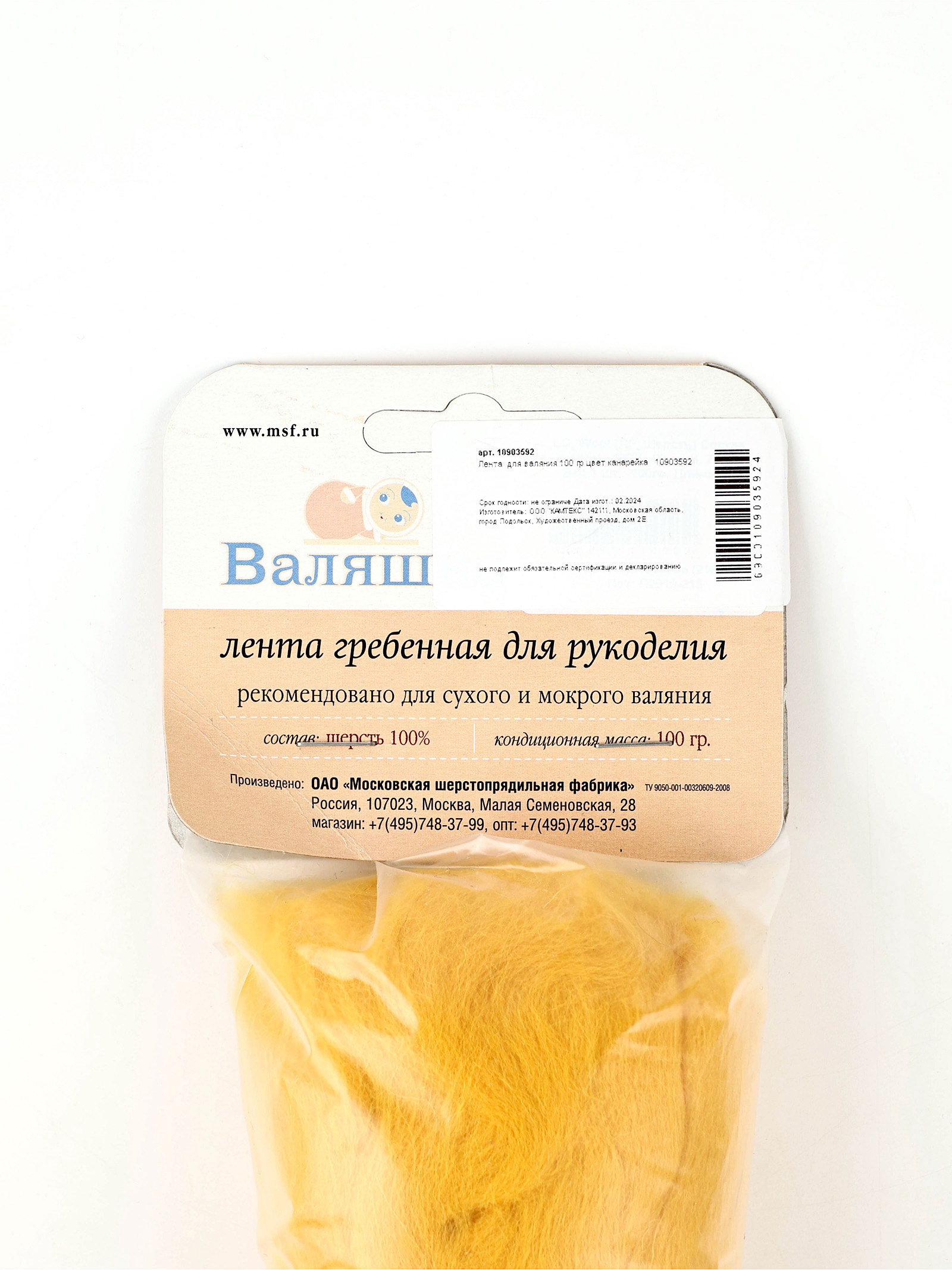 Техника валяния: Мокрая, Сухая Размер упаковки: 8 x 5 x 33 см. tnved: 5109900000 Вес, г: 100 Цвет: Жёлтый Тип: Полутонкая Мягкая полутонкая шерсть для валяния идеальный материал для творчества. Подходит для сухого и мокрого валяния, легко формируется и прекрасно держит форму. Преимущества