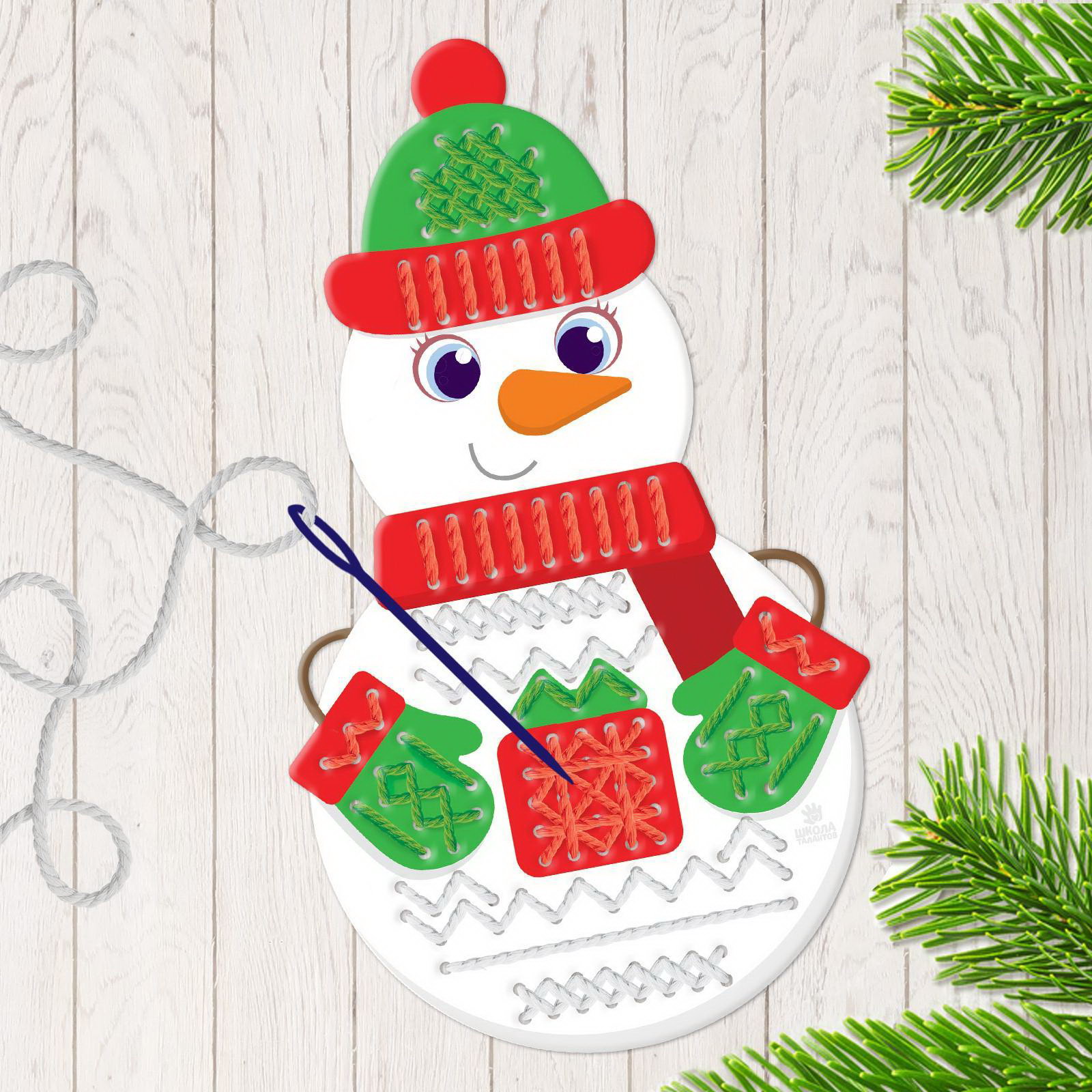 Вышивка пряжей на новый год "Снеговик" на картоне с пластиковой иглой, набор для творчества, 15.2x24x0.5 см., Школа талантов, Китай