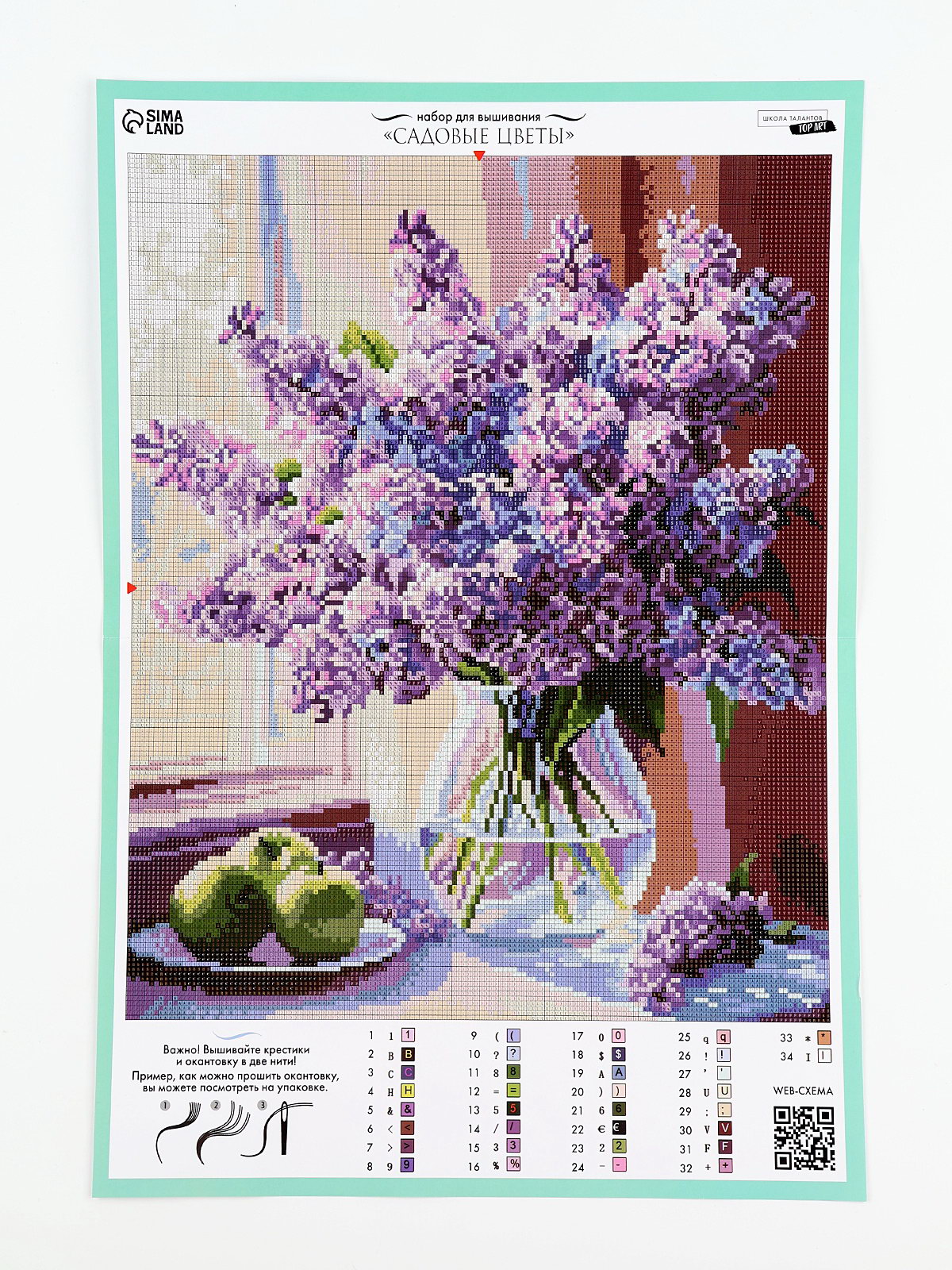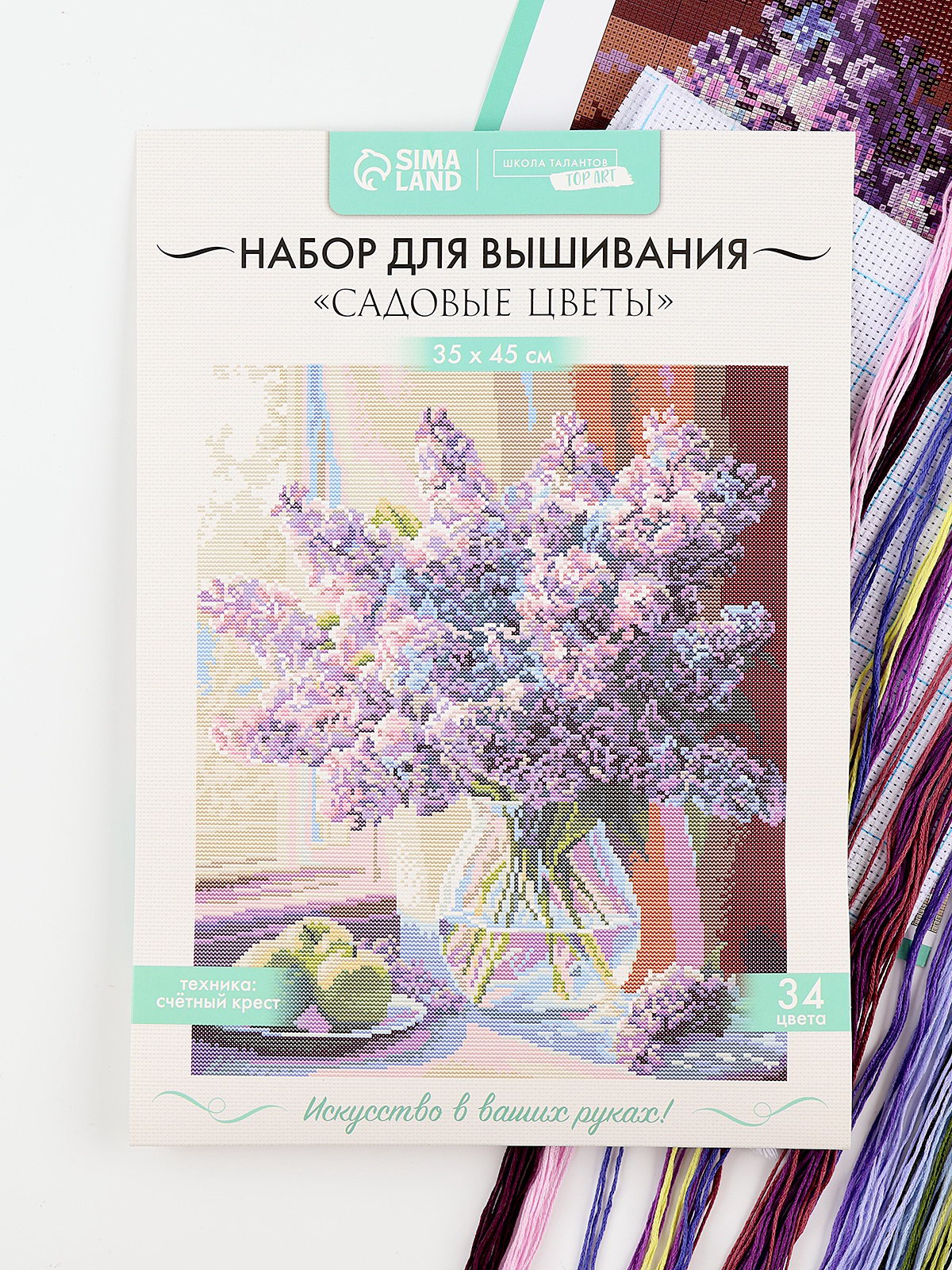 Вышивка крестиком "Садовые цветы", набор для творчества, 35x45 см, 21x38x2 см., Школа талантов, Китай