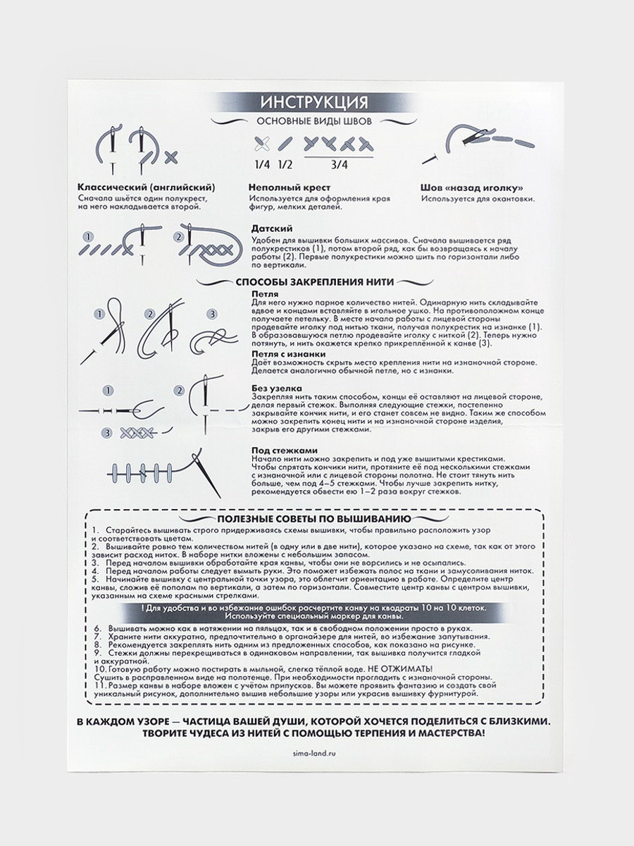 Комплектация: Игла, Инструкция, Канва, Нитки, Схема Размер упаковки: 14.5 x 0.7 x 21 см. Возраст: Детский Ширина, см: 18 Длина, см: 16 Тематика: Животный мир Материал канвы: Хлопок Тип выкладки: С частичным заполнением Техника вышивания: Вышивка крестом Каунт канвы: 14 ct Уровень сложности: Средний Рисунок на канве: Нет Количество цветов ниток: 23 Набор: Да Рисунок: Да Цвет: Разноцветный Размер, см: 16 x 18 Размер, см: 16 x 18 tnved: 6308000000 С набором для вышивки у вас получится смастерить своими руками настоящий шедевр. Как работать с набором