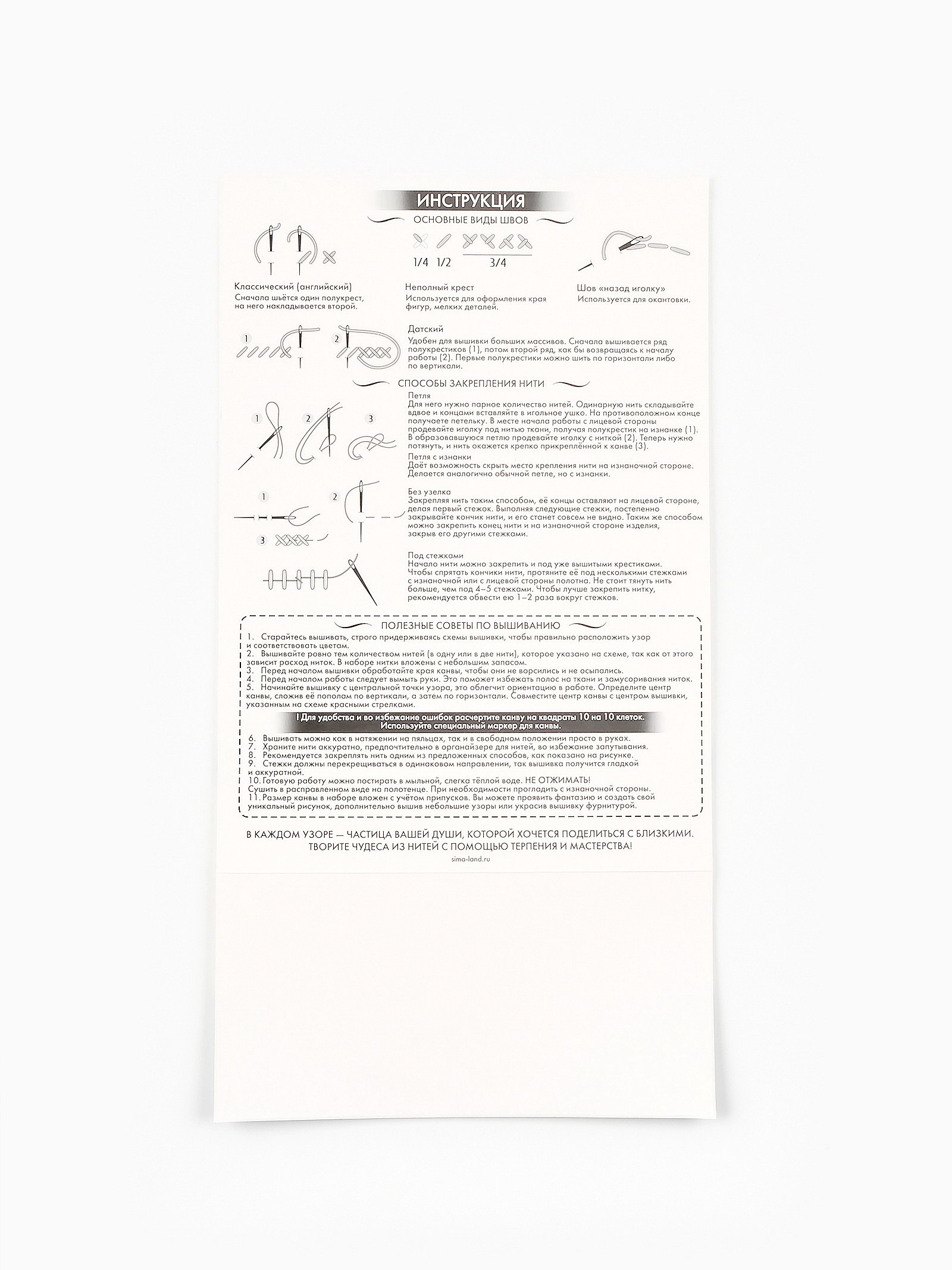 Комплектация: Игла, Инструкция, Канва, Нитки, Схема Размер упаковки: 21 x 2.5 x 30 см. tnved: 6308000000 Возраст: Любой Количество цветов ниток: 35 Каунт канвы: 11 ct Техника вышивания: Вышивка крестом Рисунок на канве: Нет Тип выкладки: С полным заполнением Длина, см: 45 Ширина, см: 45 Уровень сложности: Средний Тип канвы: Равномерная Материал канвы: Хлопок | ||