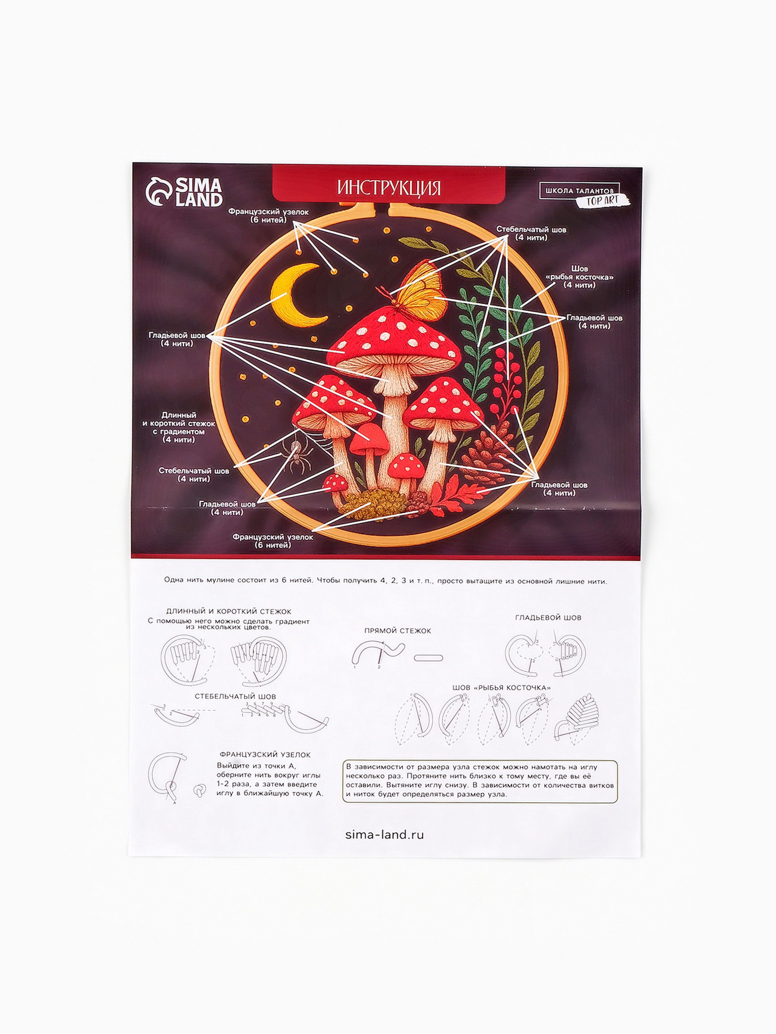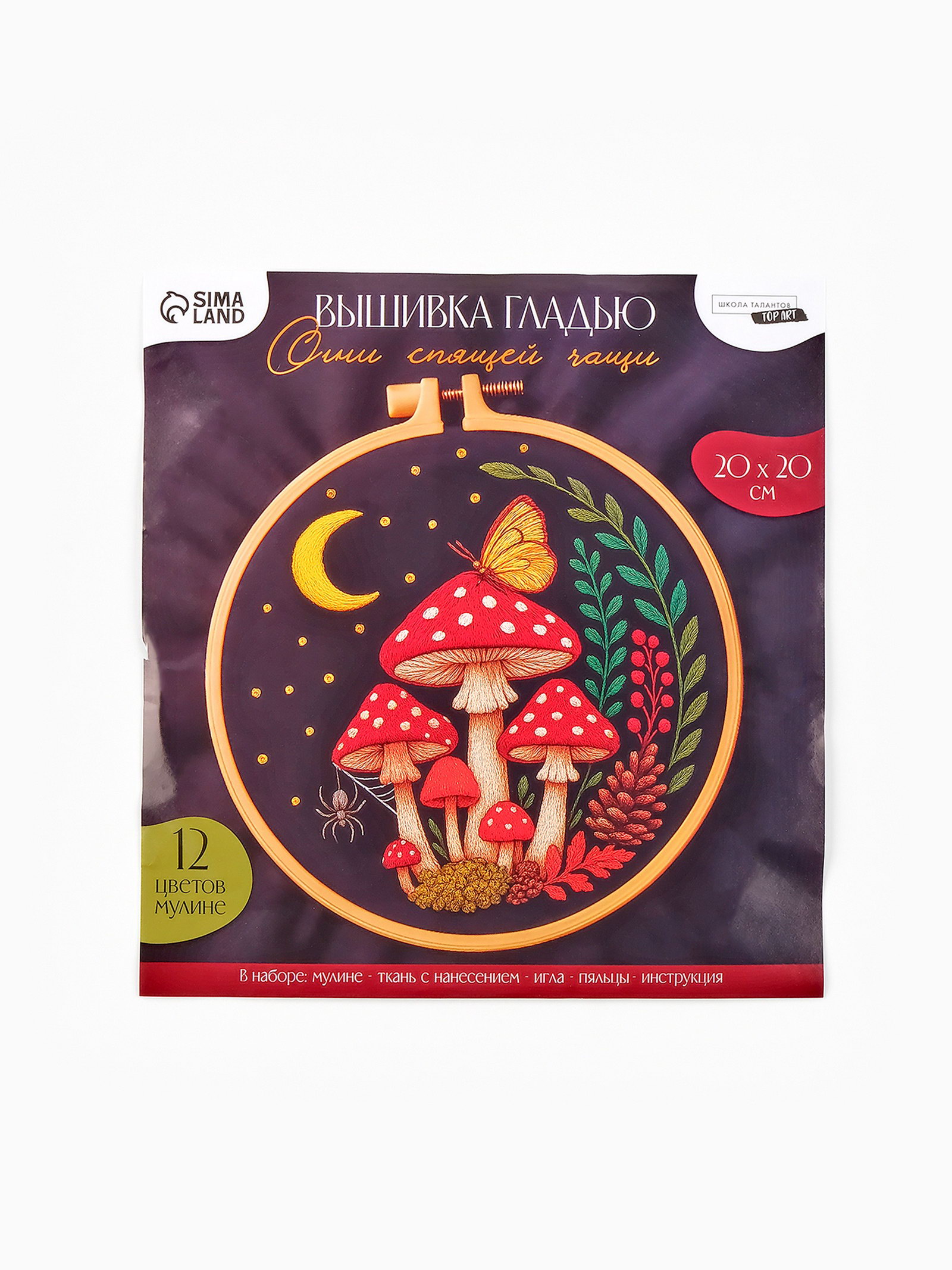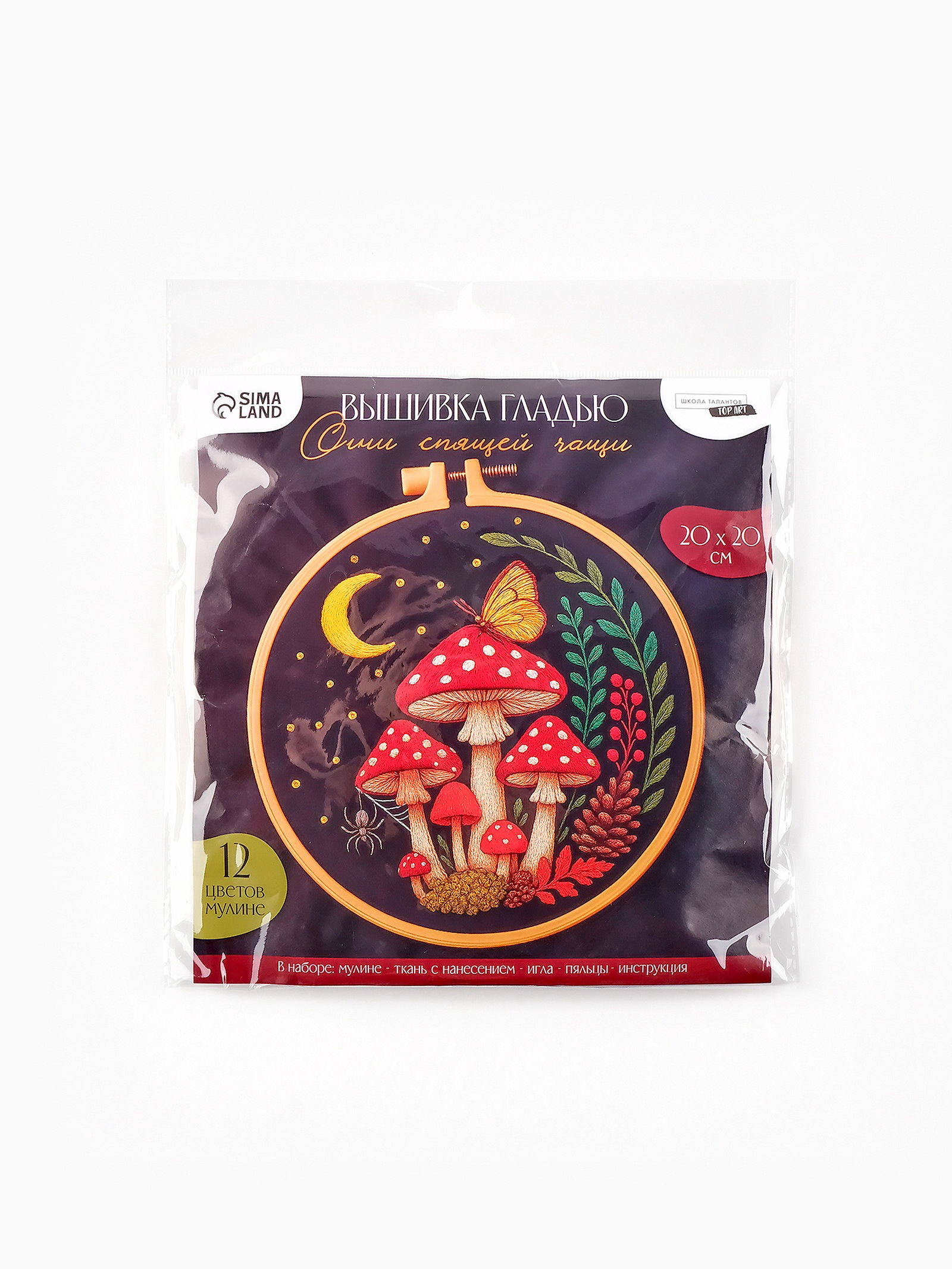 Тематика: Грибы, Цветочно-растительная Комплектация: Игла, Инструкция, Канва, Нитки, Пяльцы Размер упаковки: 1 x 26 x 22 см. tnved: 6308000000 Возраст: Любой Количество цветов ниток: 12 Техника вышивания: Вышивка гладью Рисунок на канве: Да Тип выкладки: С полным заполнением Длина, см: 20 Ширина, см: 20 Тип канвы: С нанесенной разметкой Уровень сложности: Средний Материал канвы: Хлопок С набором для вышивки на пяльцах у вас получится смастерить своими руками настоящий шедевр. Как работать с набором