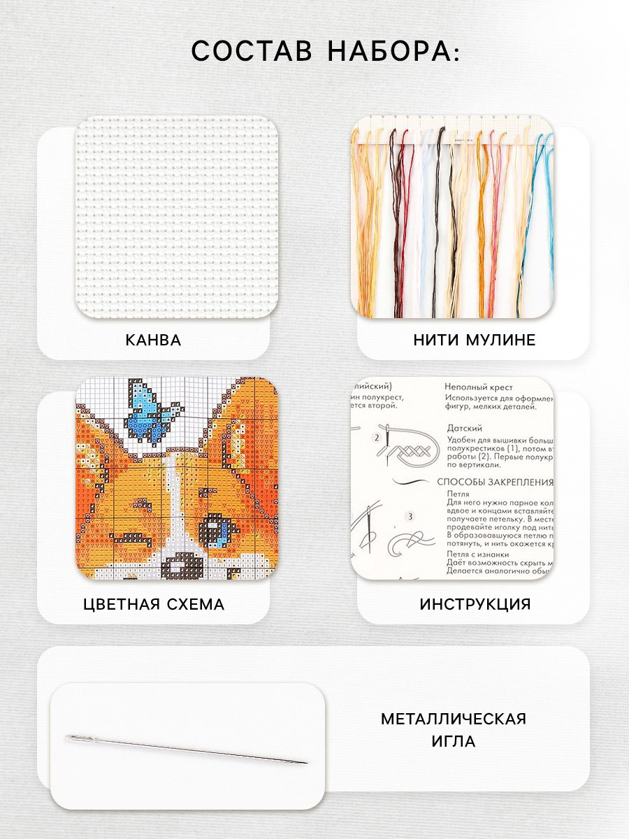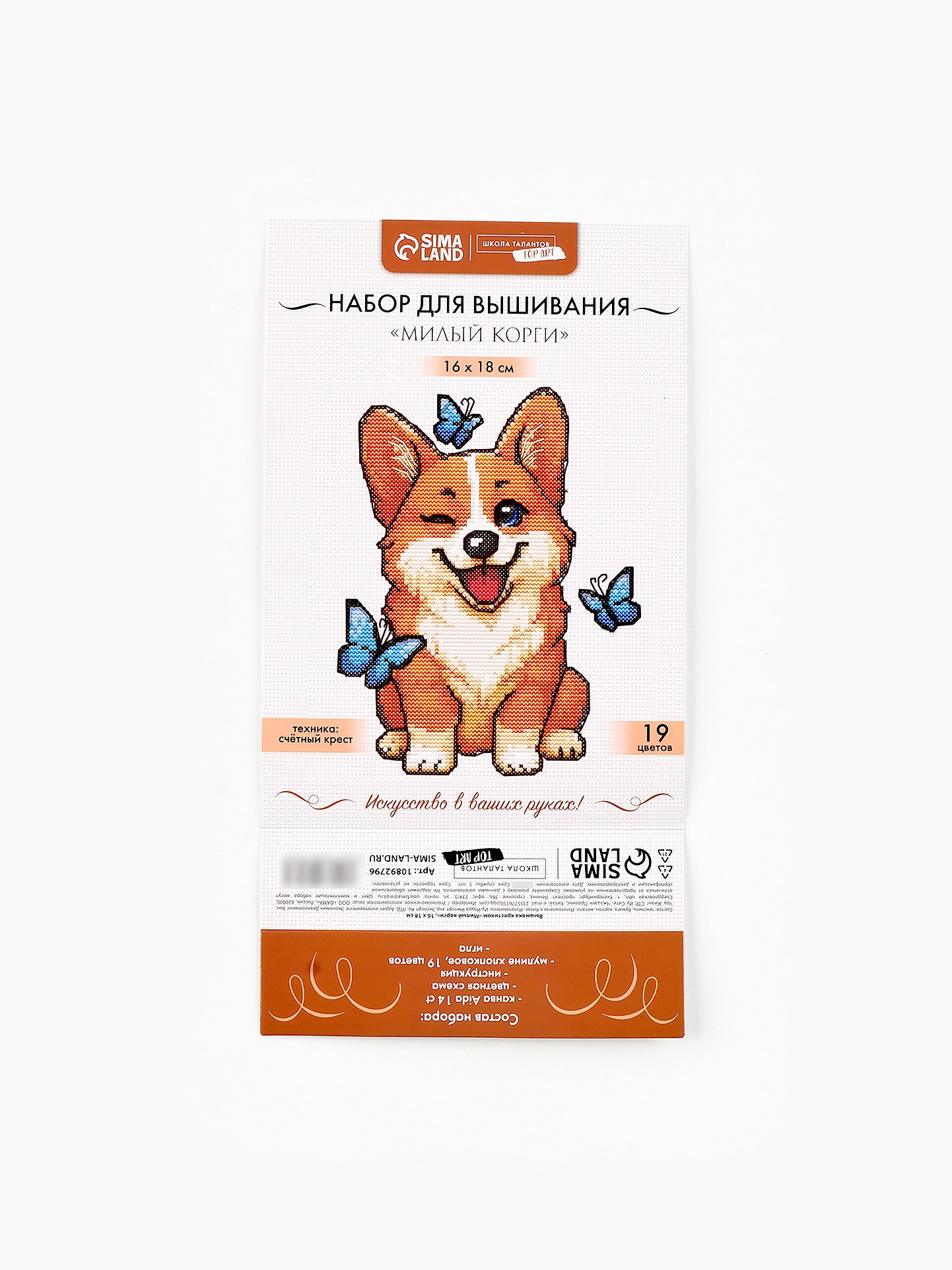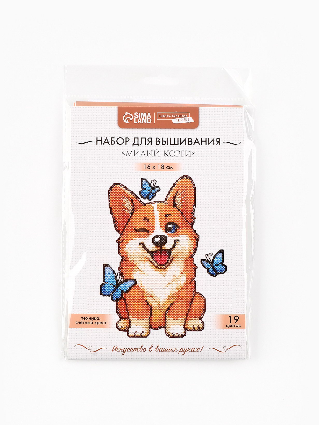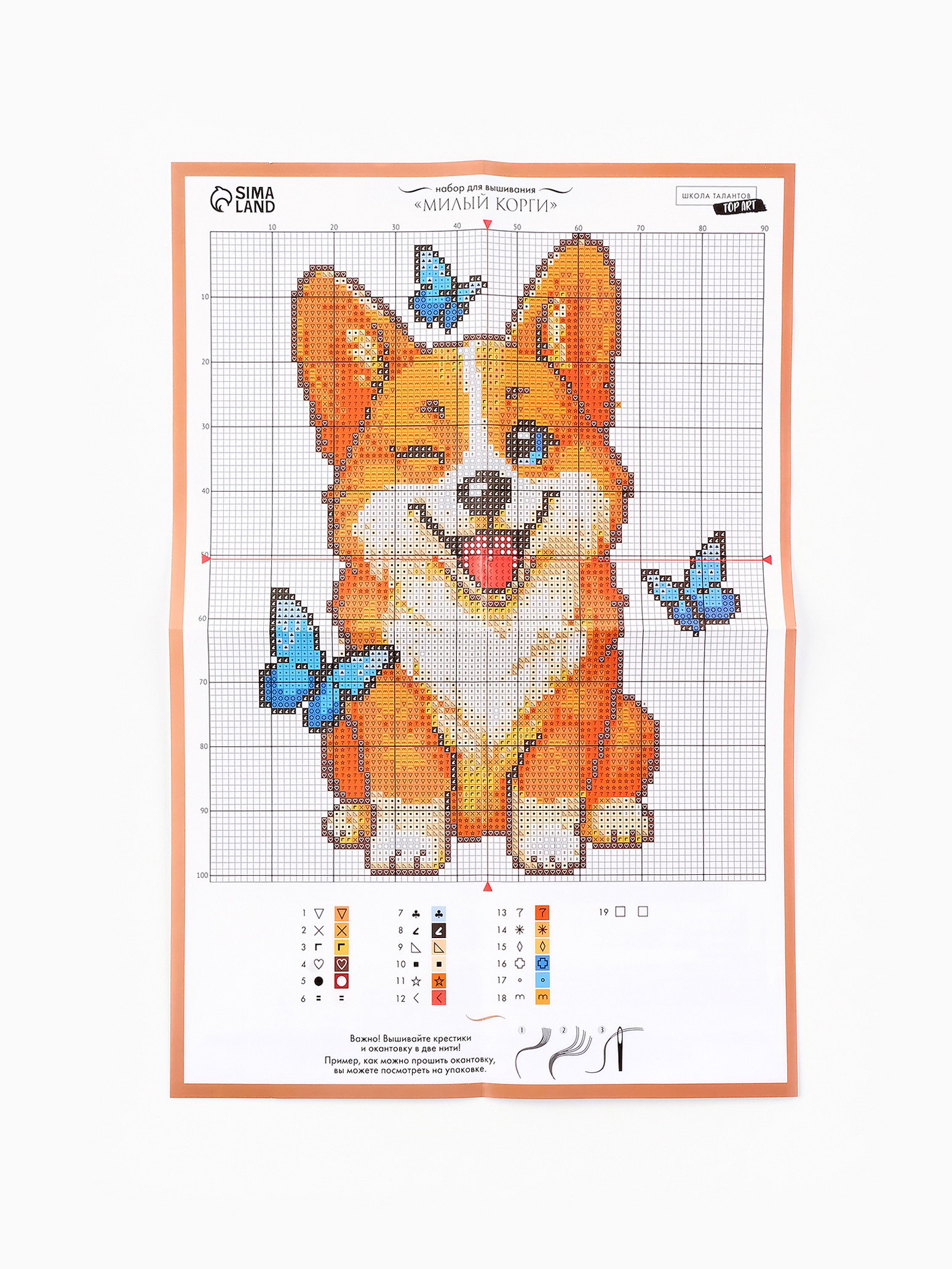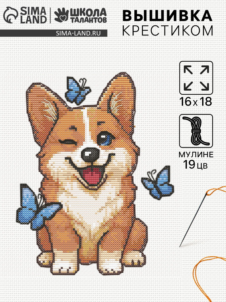 Вышивка крестиком "Милый корги", 16x18 см, 14.5x21x3 см., Школа талантов, Китай