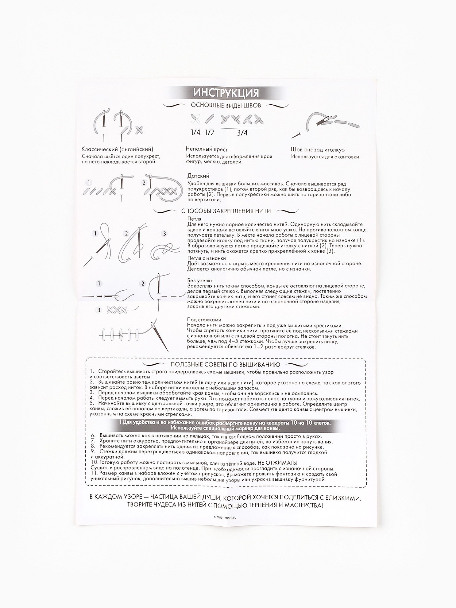 Комплектация: Игла, Инструкция, Канва, Нитки, Схема Размер упаковки: 14.5 x 0.5 x 21.5 см. tnved: 6308000000 Возраст: Любой Количество цветов ниток: 19 Длина, см: 18 Каунт канвы: 14 ct Материал канвы: Хлопок Рисунок на канве: Нет Тематика: Животный мир Уровень сложности: Средний Тип канвы: Равномерная Ширина, см: 16 Техника вышивания: Вышивка крестом Тип выкладки: С полным заполнением С набором для вышивки у вас получится смастерить своими руками настоящий шедевр. Как работать с набором