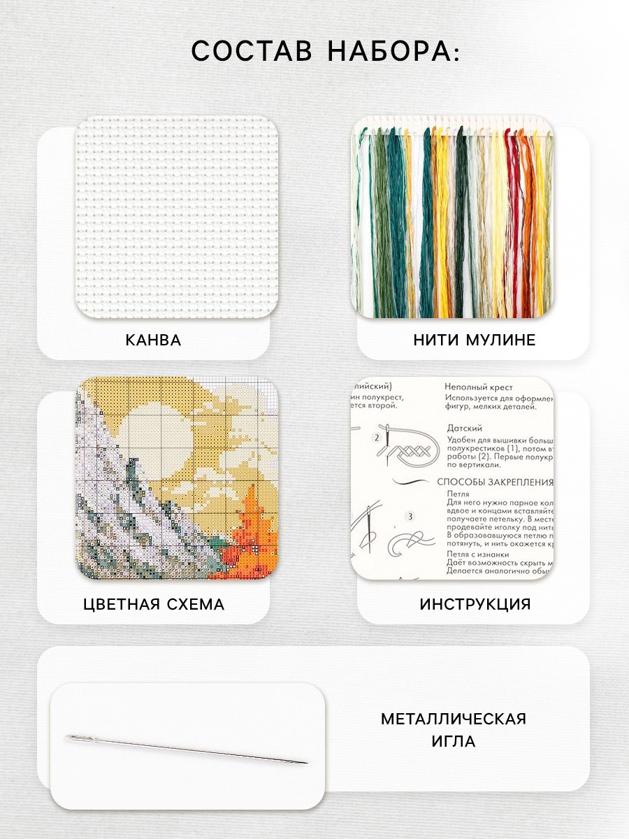 Комплектация: Игла, Инструкция, Канва, Нитки, Схема Размер упаковки: 21.5 x 2 x 30 см. tnved: 6308000000 Количество цветов ниток: 28 Возраст: Любой Длина, см: 45 Рисунок на канве: Нет Каунт канвы: 11 ct Материал канвы: Хлопок Тип канвы: Равномерная Тематика: Природа Уровень сложности: Средний Ширина, см: 35 Техника вышивания: Вышивка крестом Тип выкладки: С полным заполнением С набором для вышивки у вас получится смастерить своими руками настоящий шедевр. Как работать с набором