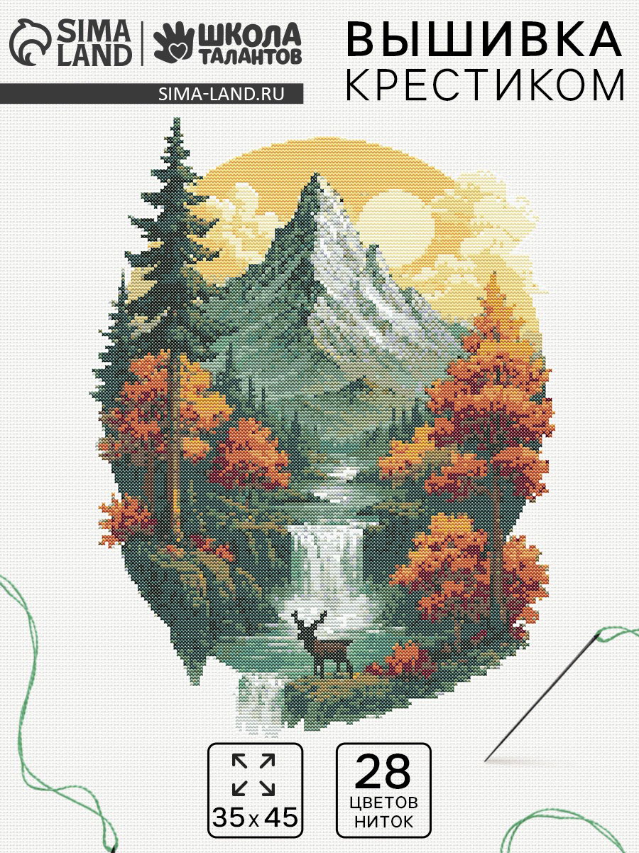 Вышивка крестиком "В объятиях леса и гор", 35x45 см, 21x38x2 см., Школа талантов, Китай
