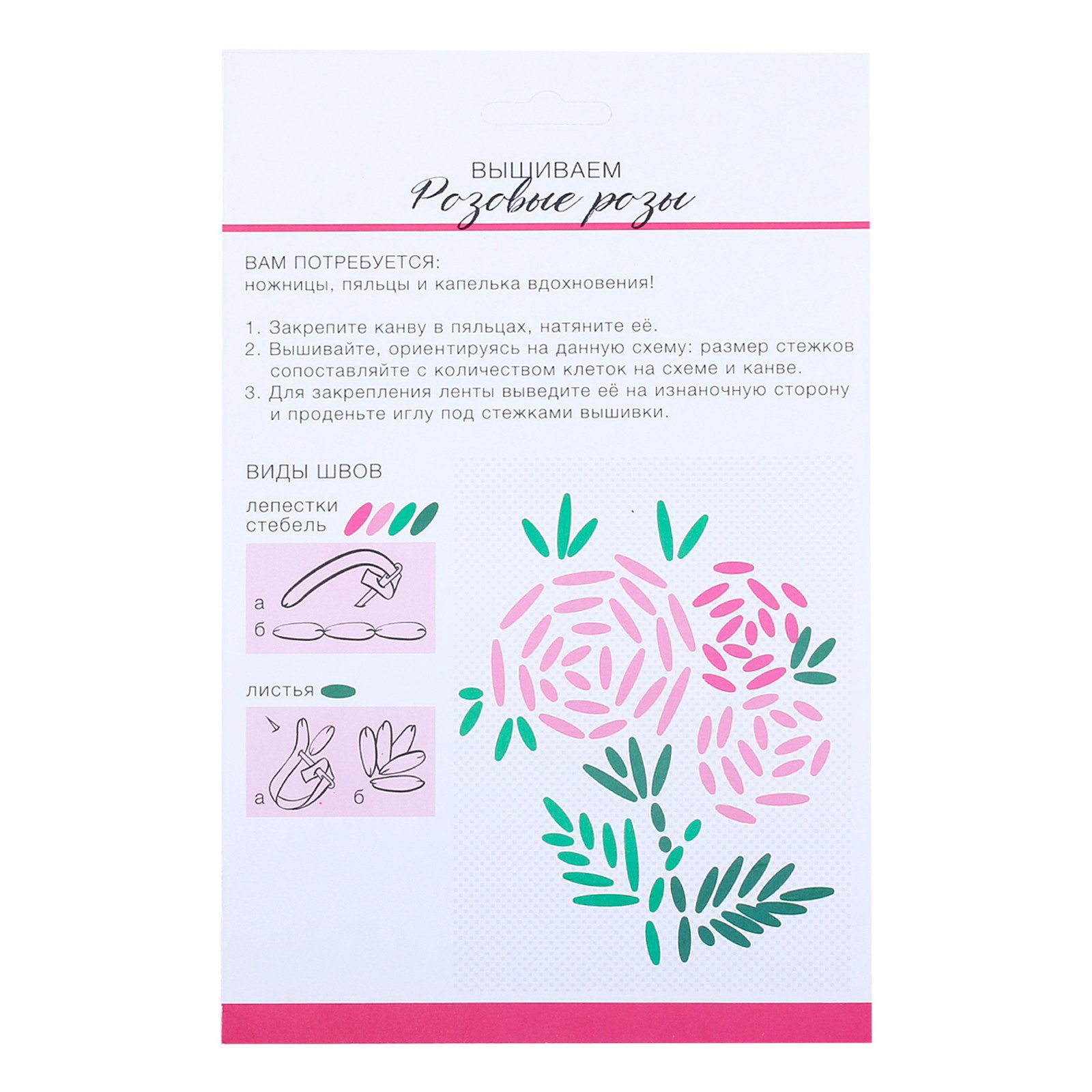 Вышивка лентами на канве "Розовые розы", набор для творчества, 15.2x23.5x0.5 см., Школа талантов, Китай