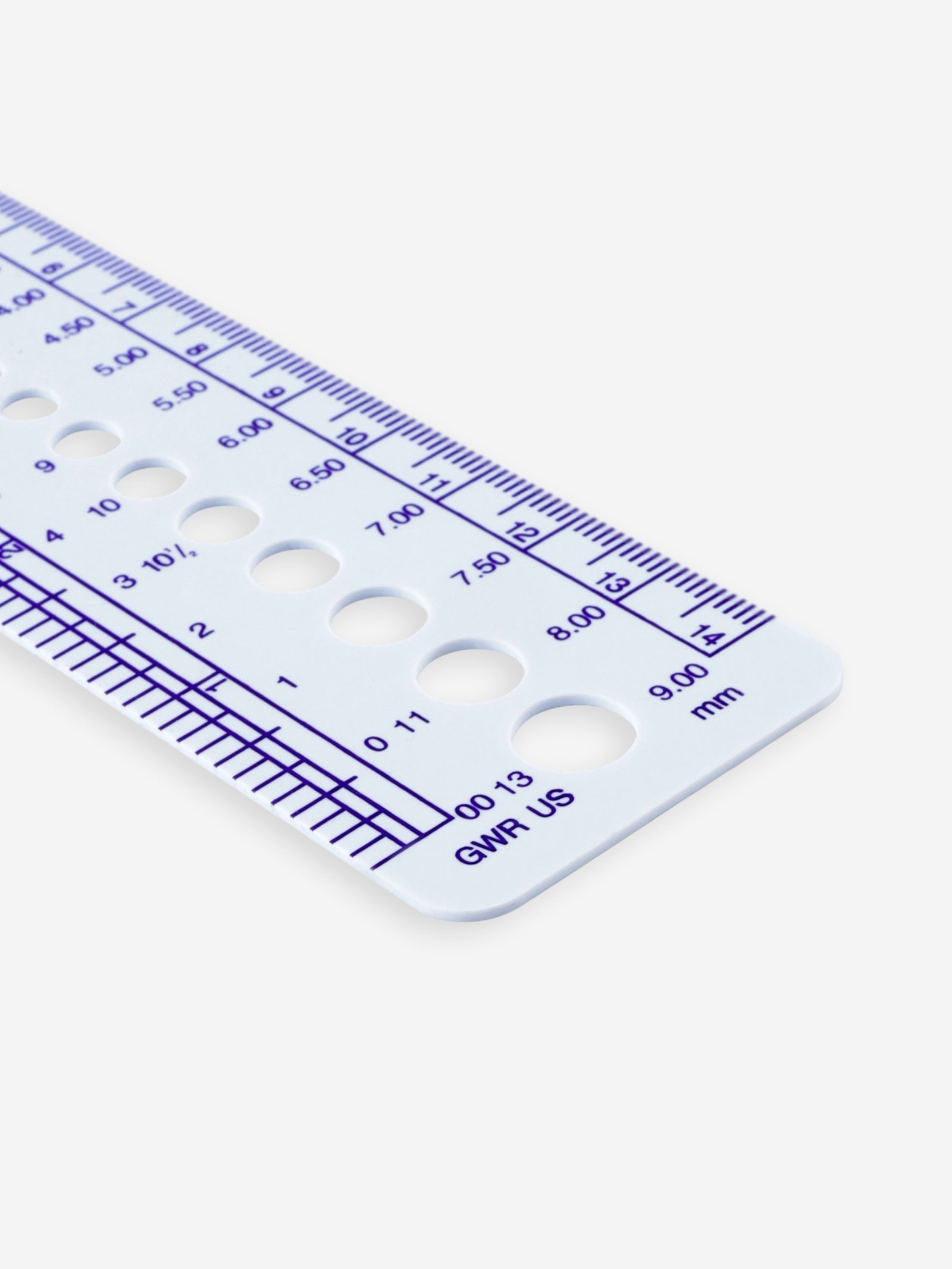 Линейка для определения размера спиц для вязания, 14 см, 5x14x0.5 см., Арт Узор, Китай