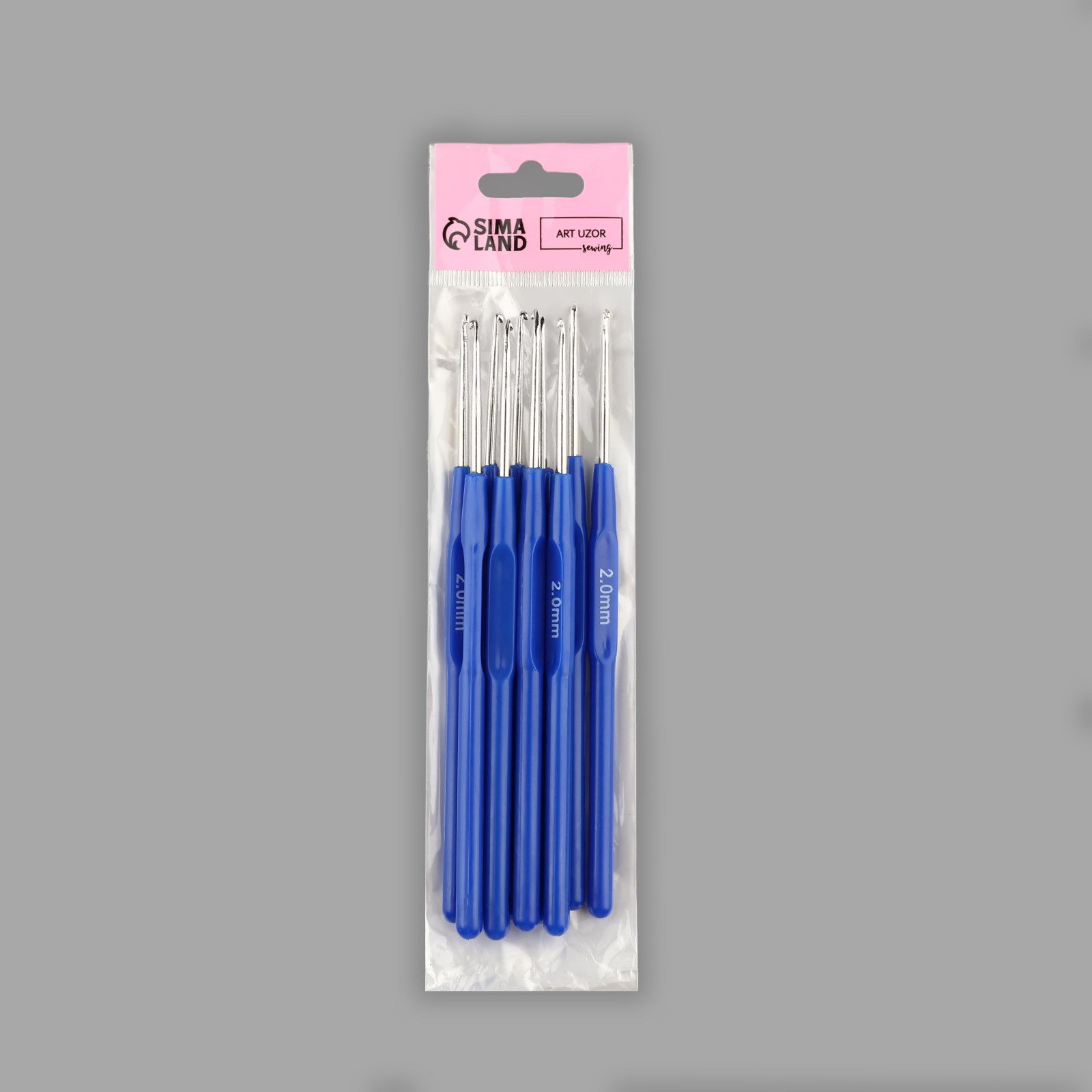 Крючок для вязания, с пластиковой ручкой, d=2 мм, 13.5 см, синий, 20х20х0.6 см., Арт Узор, Китай
