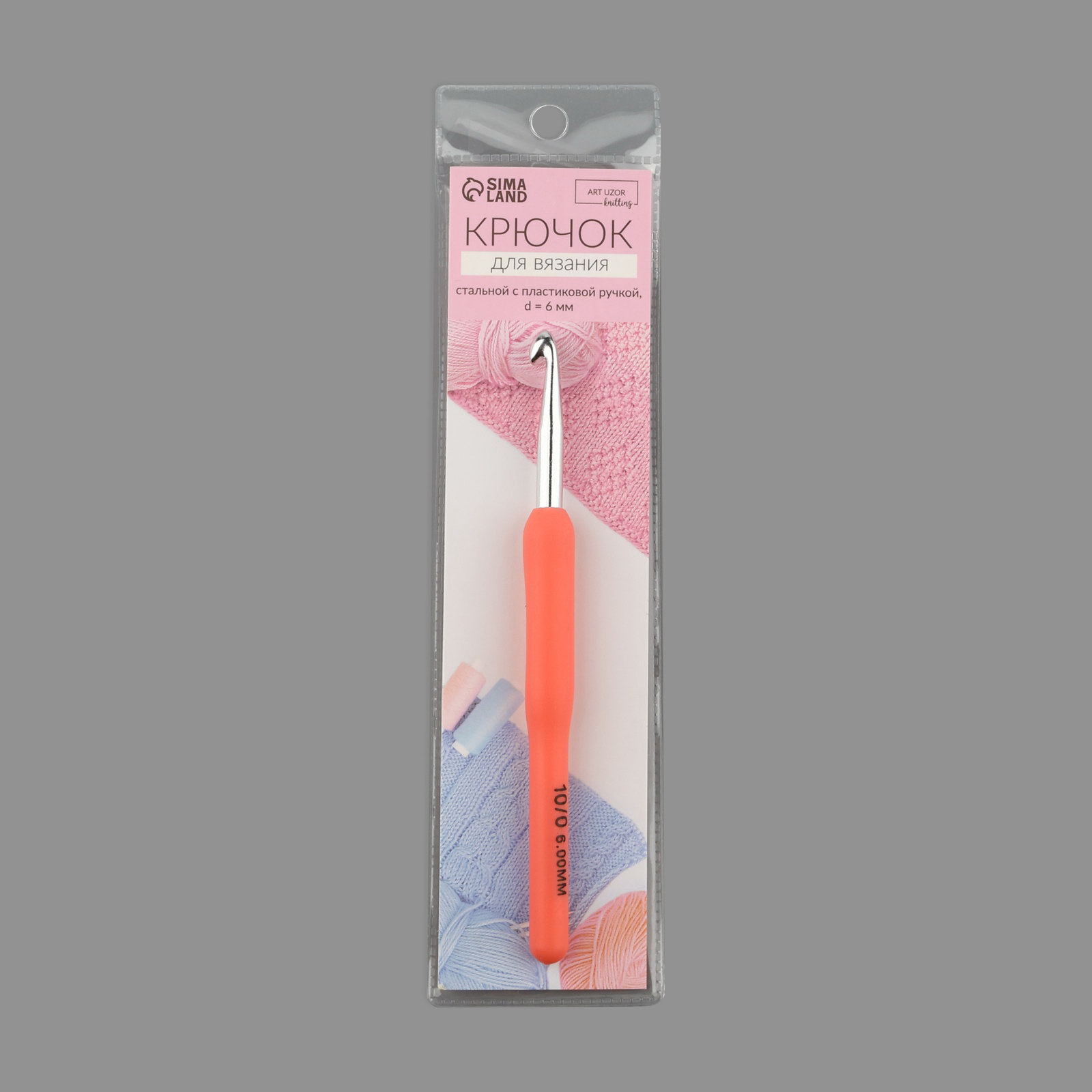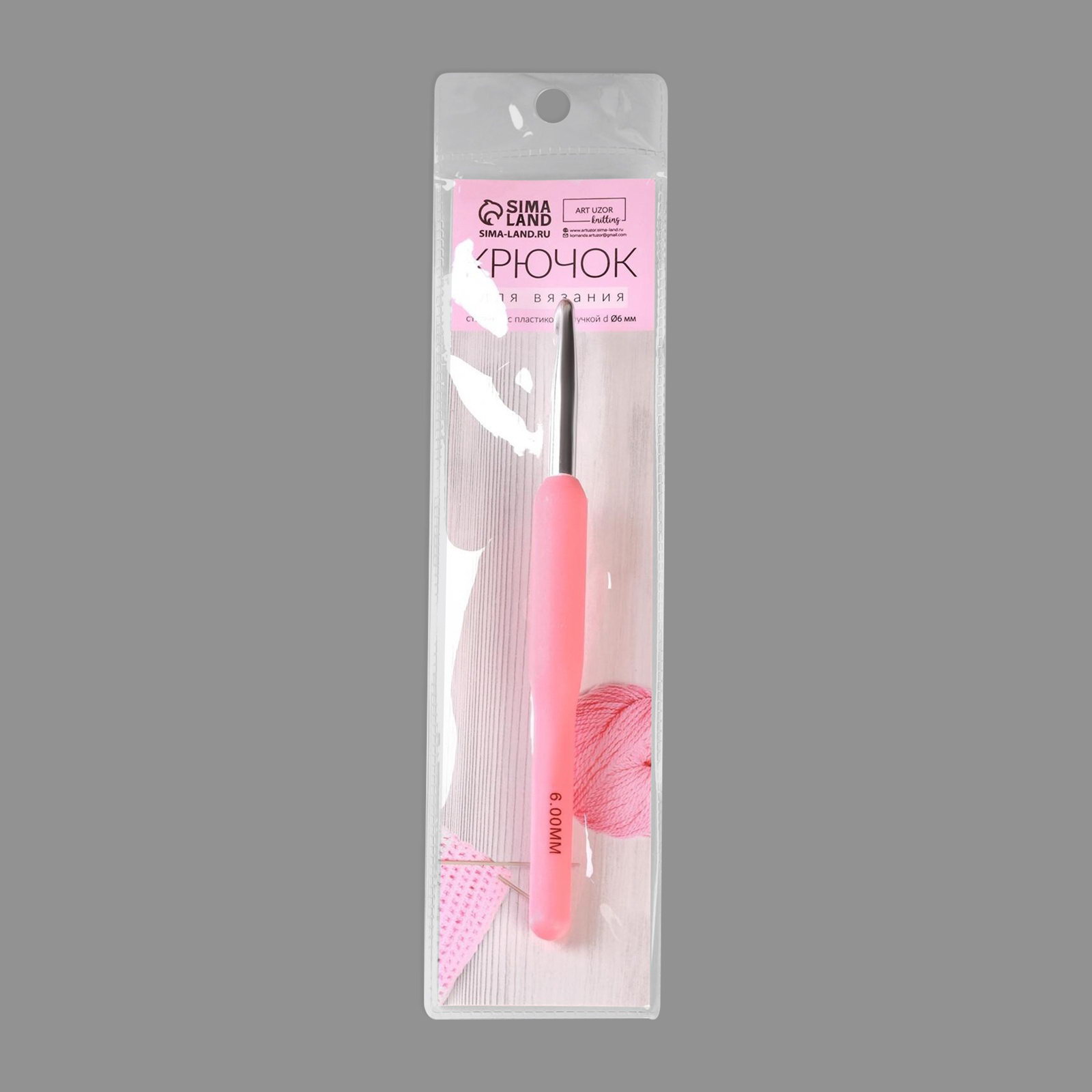 Крючок для вязания, с пластиковой ручкой, d = 6 мм, 14 см, цвет розовый, 60х60х1 см., Арт Узор, Китай