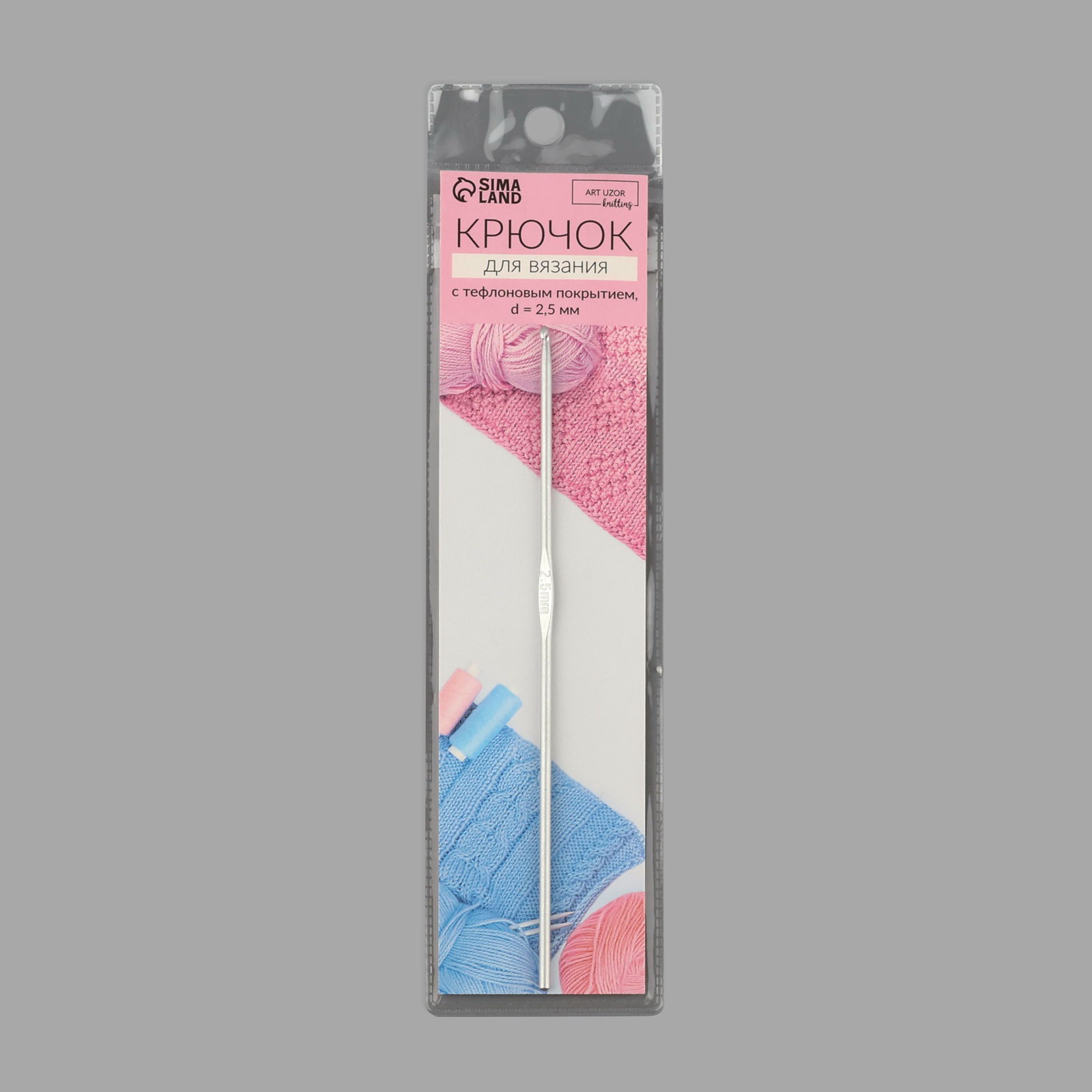 Крючок для вязания, с тефлоновым покрытием, d=2.5 мм, 15 см, 25х25х0.3 см., Арт Узор, Китай