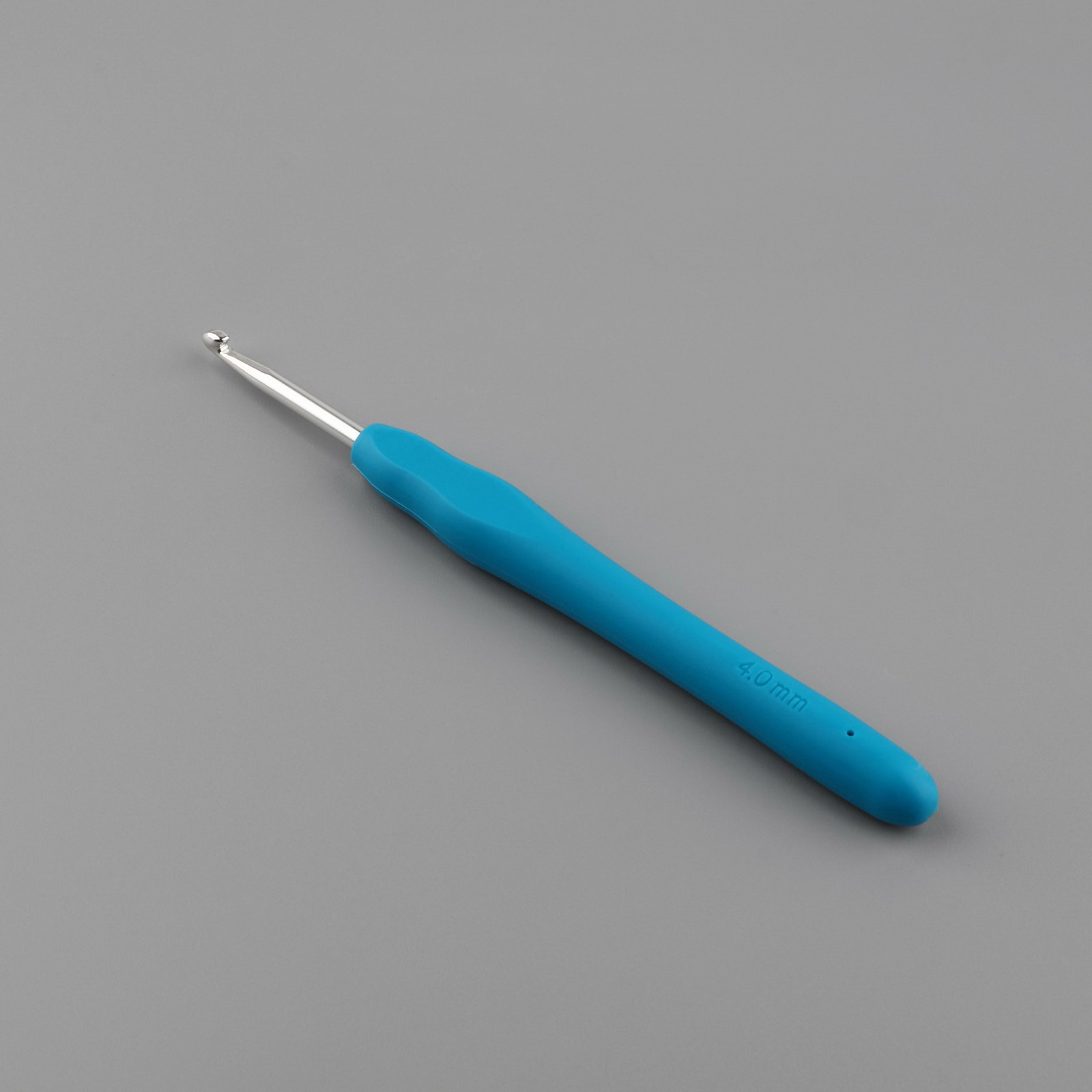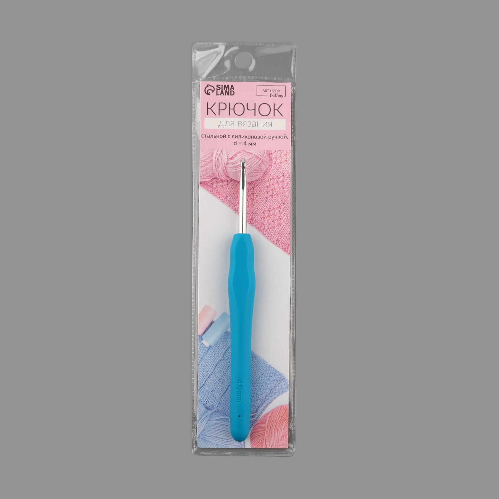Крючок для вязания, с силиконовой ручкой, d=4 мм, 14 см, голубой, 40х40х1 см., Арт Узор, Китай
