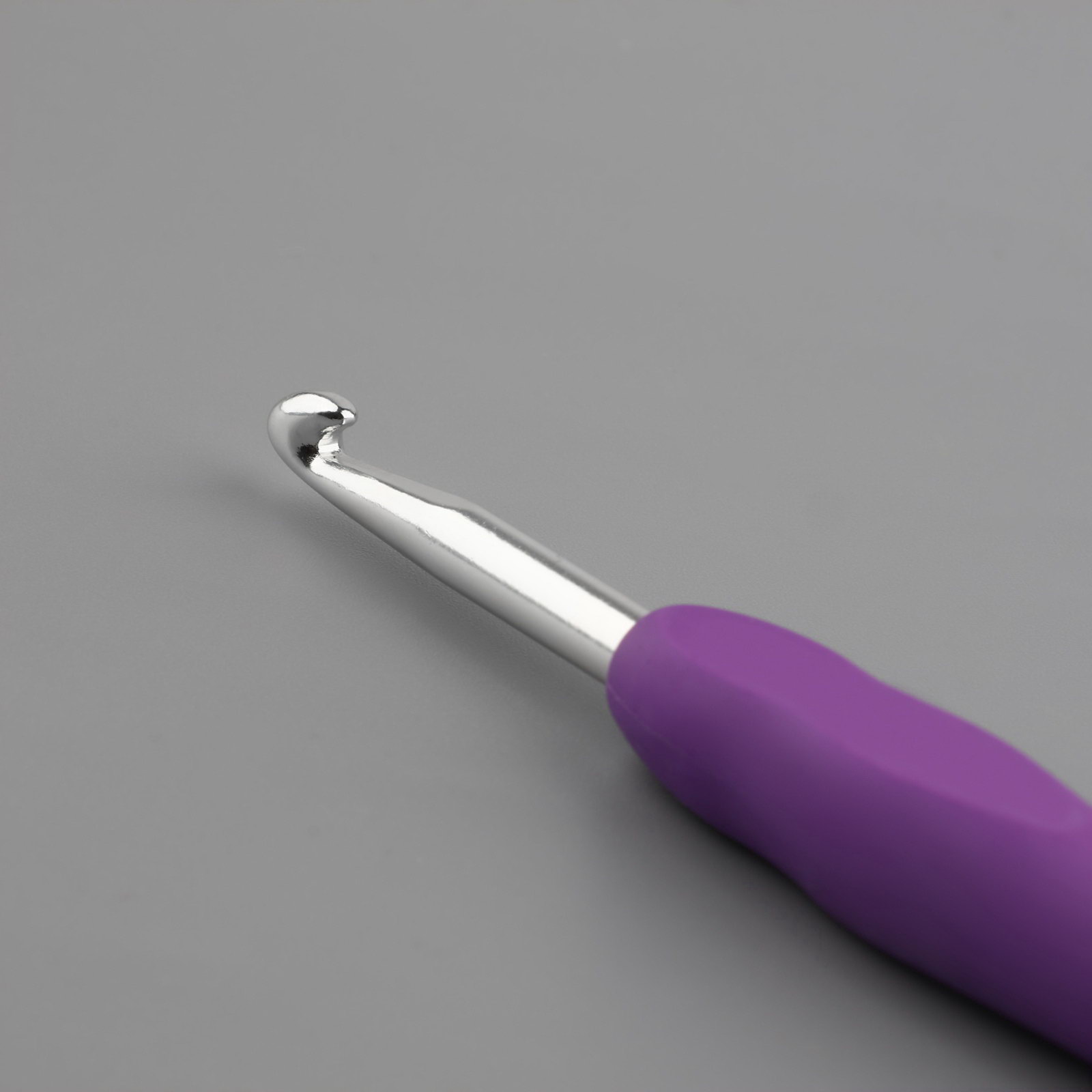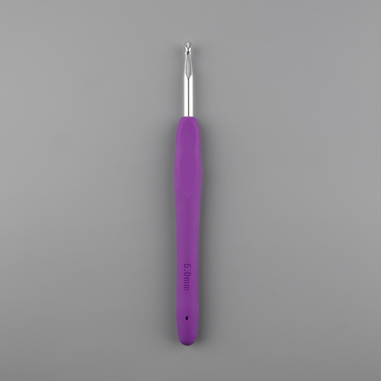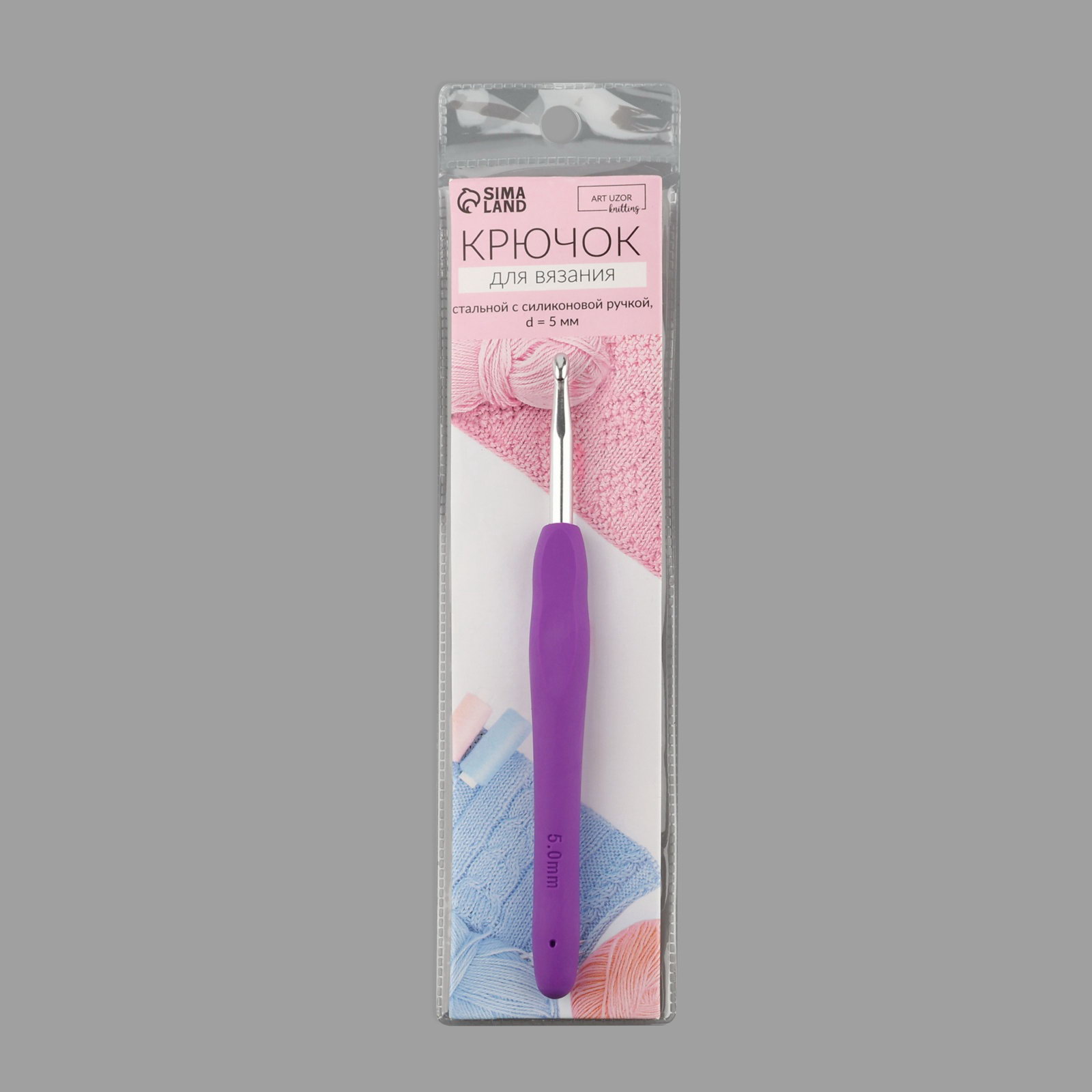 Крючок для вязания, с силиконовой ручкой, d=5 мм, 14 см, фиолетовый, 50х50х1.2 см., Арт Узор, Китай