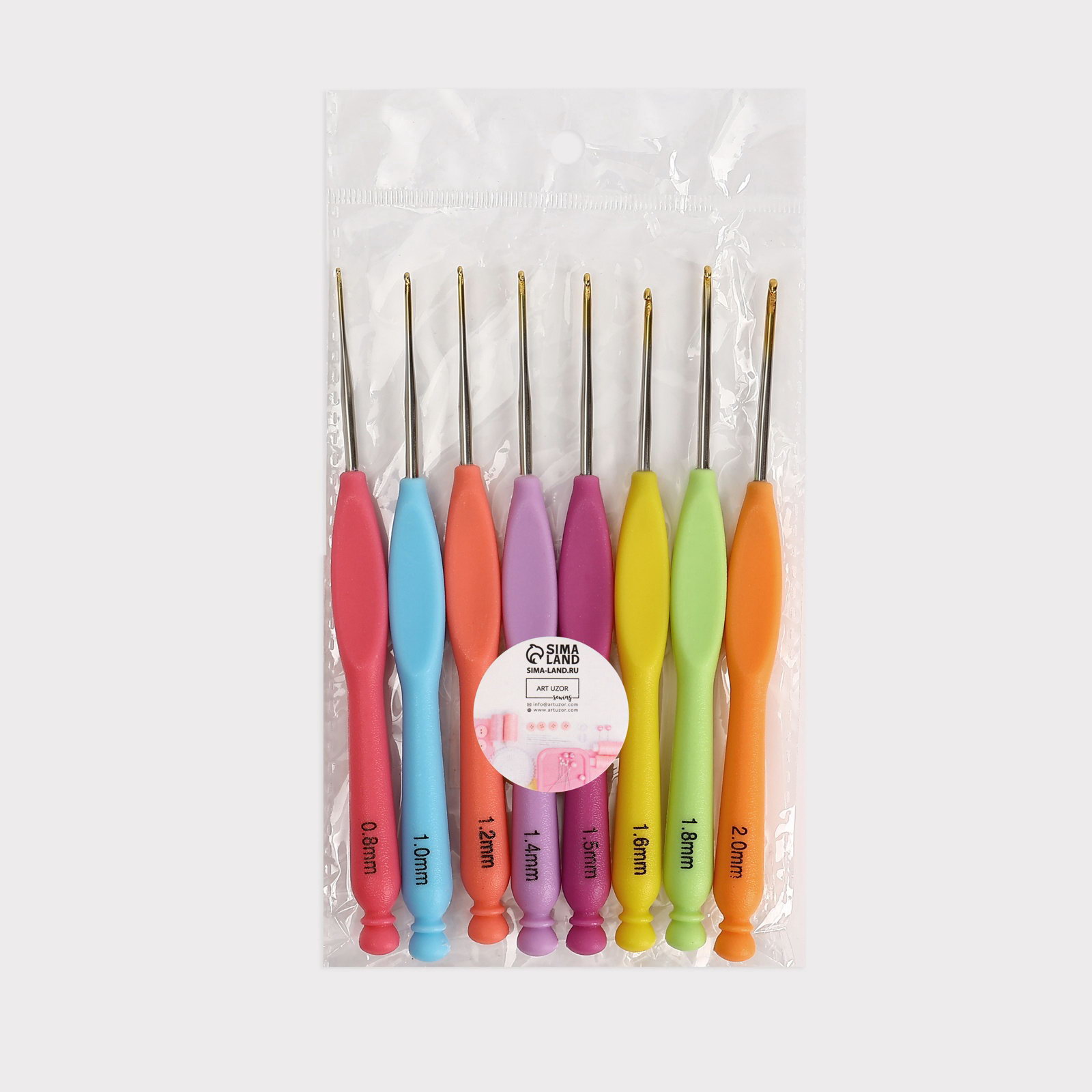 Набор крючков для вязания, с пластиковой ручкой, d=0.8-2 мм, 8 шт., 10x13.5x1 см., Арт Узор, Китай