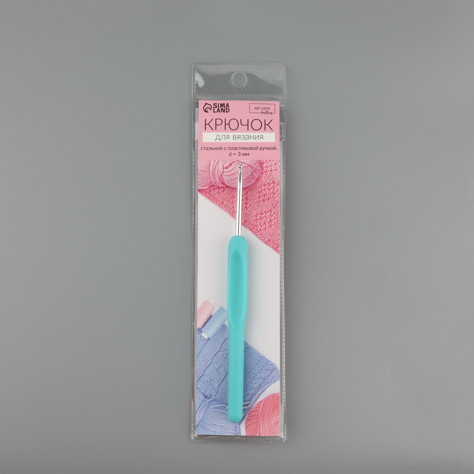 Крючок для вязания, с пластиковой ручкой, d = 3 мм, 14 см, цвет голубой, 30х30х1 см., Арт Узор, Китай