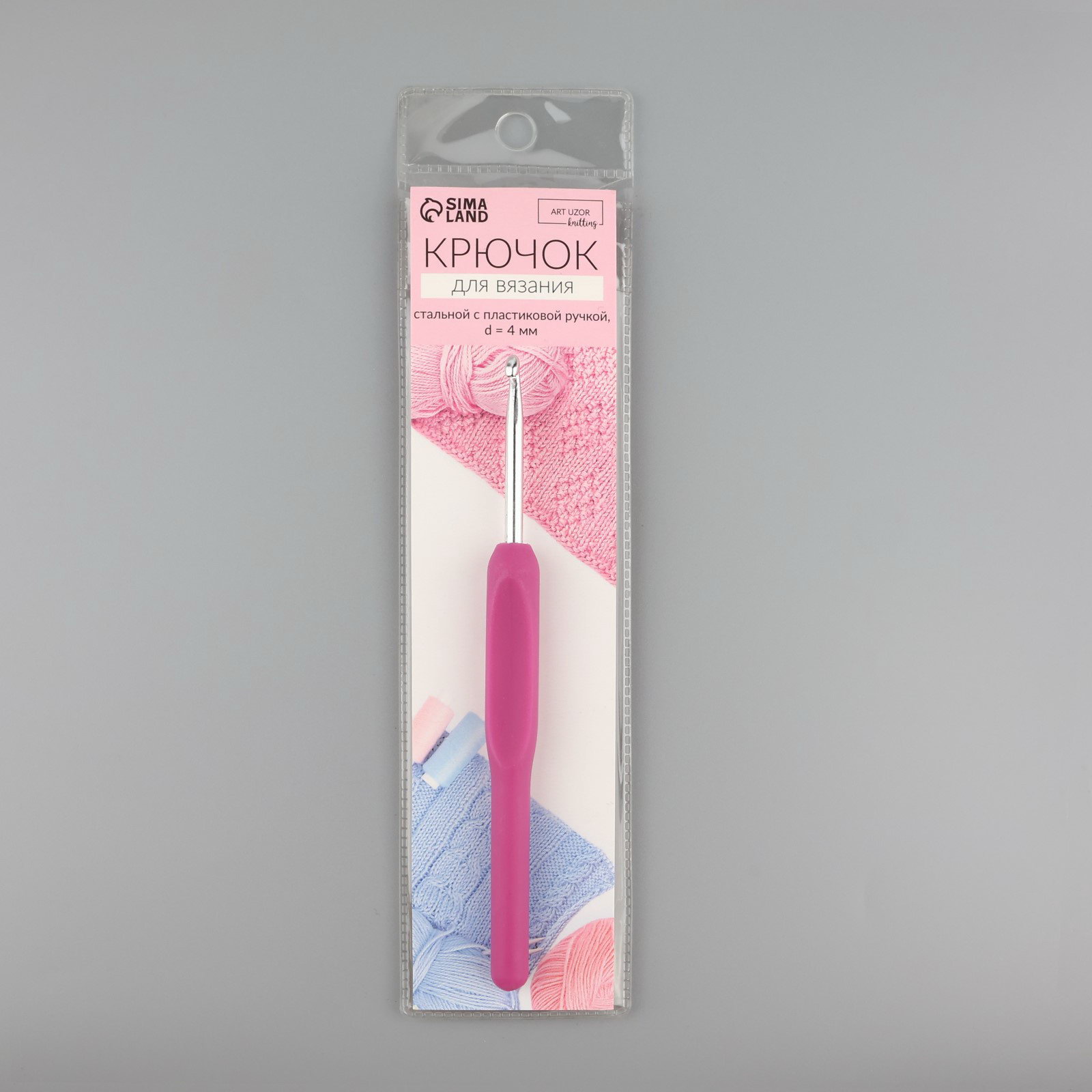 Крючок для вязания, с пластиковой ручкой, d=4 мм, 14 см, фиолетовый, 40х40х1 см., Арт Узор, Китай